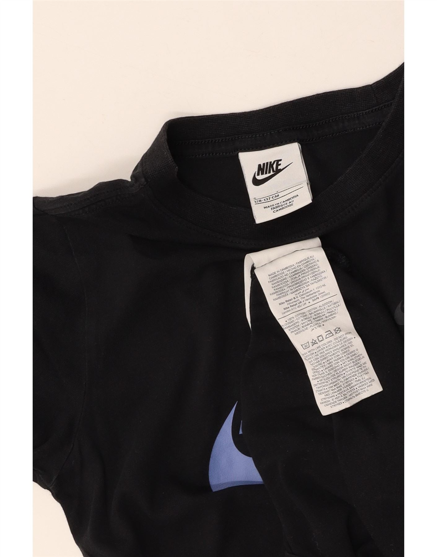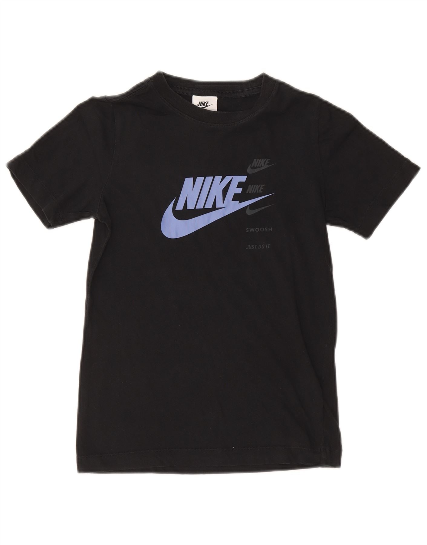 NIKE Boys Swoosh Graphic T-Shirt Top 8-9 Years Small Navy Blue Cotton