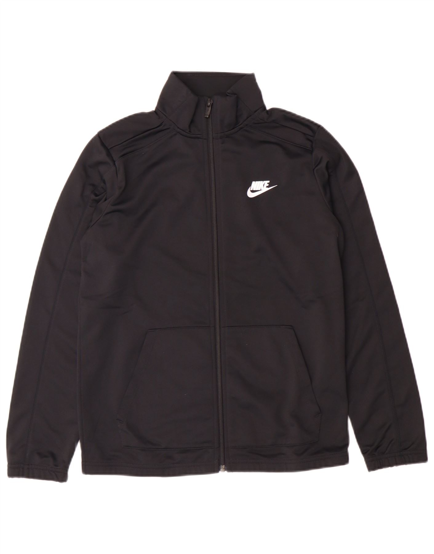 NIKE Boys Tracksuit Top Jacket 12-13 Years Large Black Polyester