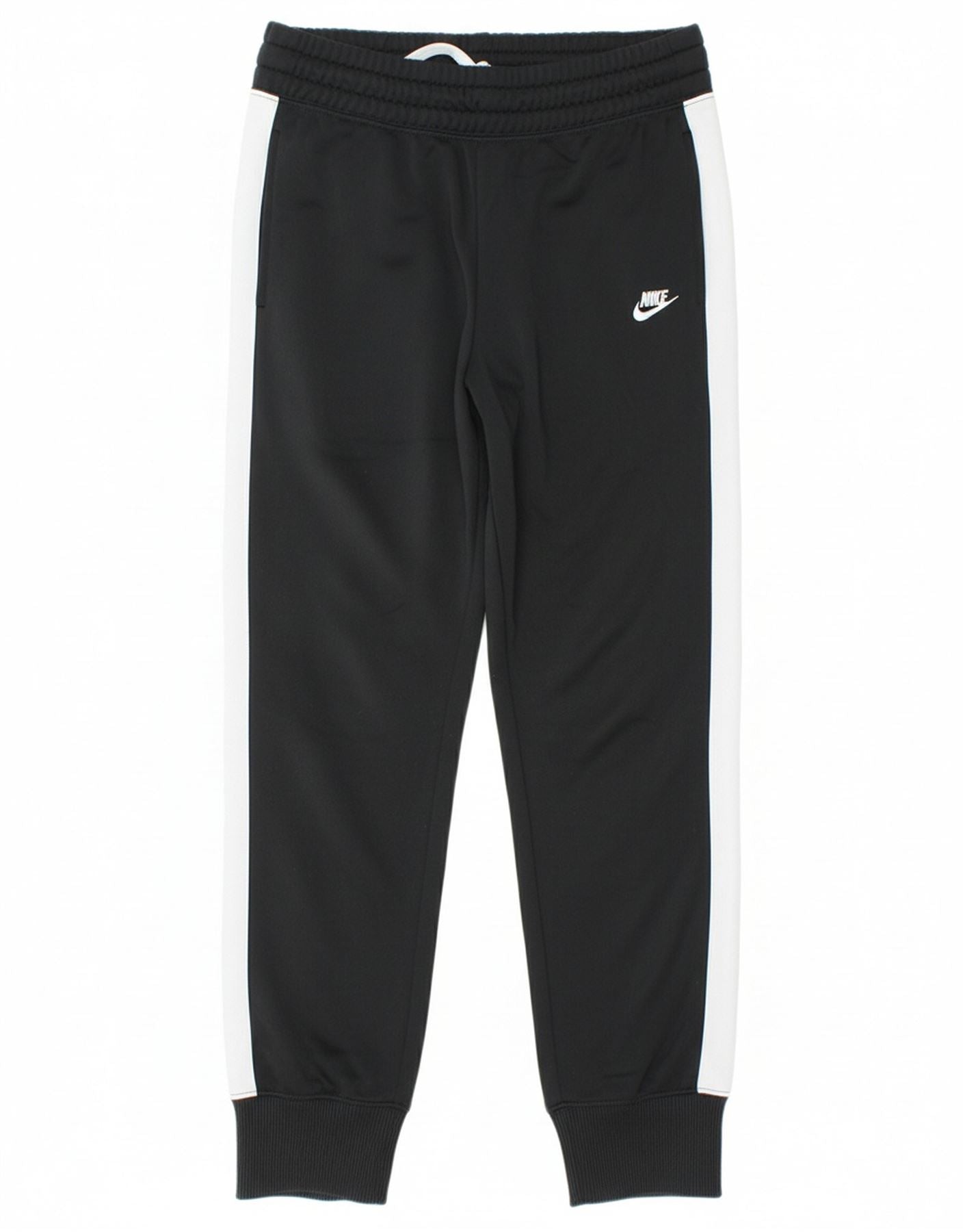 NIKE Boys Tracksuit Trousers Joggers 8-9 Years Small Black Colourblock
