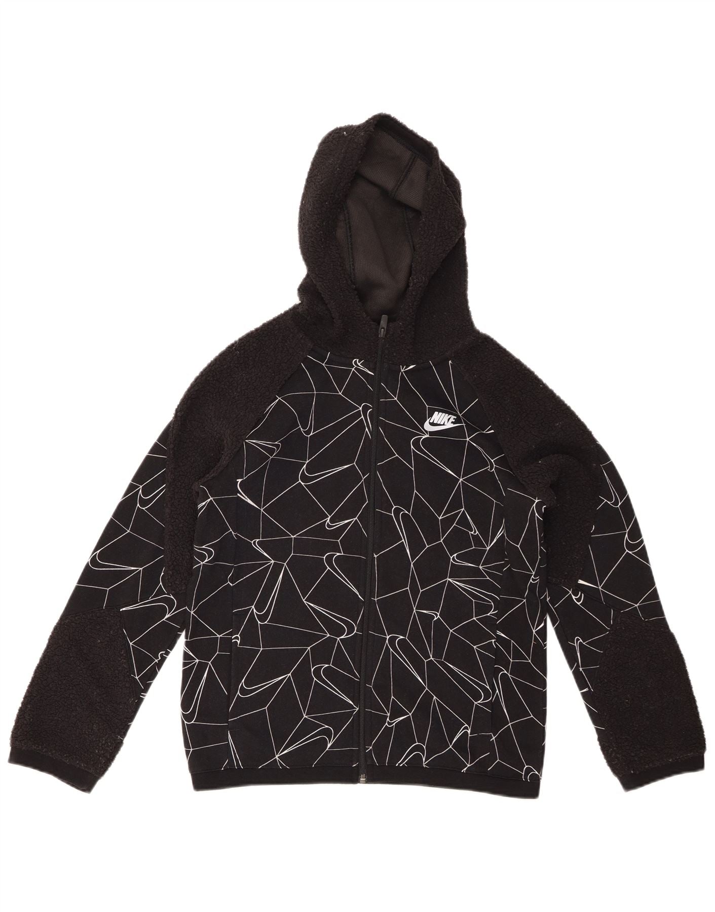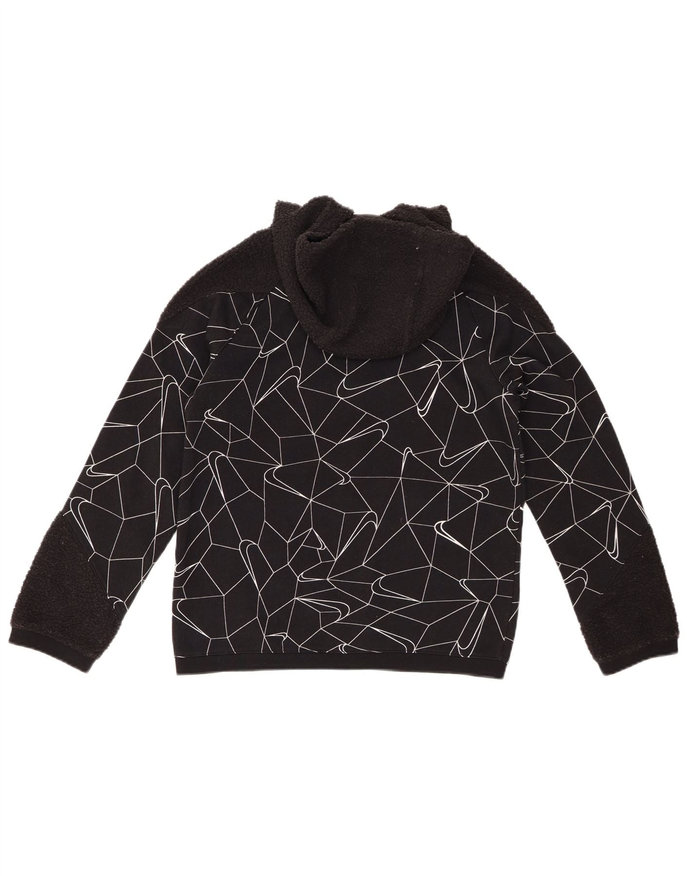 NIKE Boys Zip Hoodie Sweater 12-13 Years Large Black Geometric Cotton