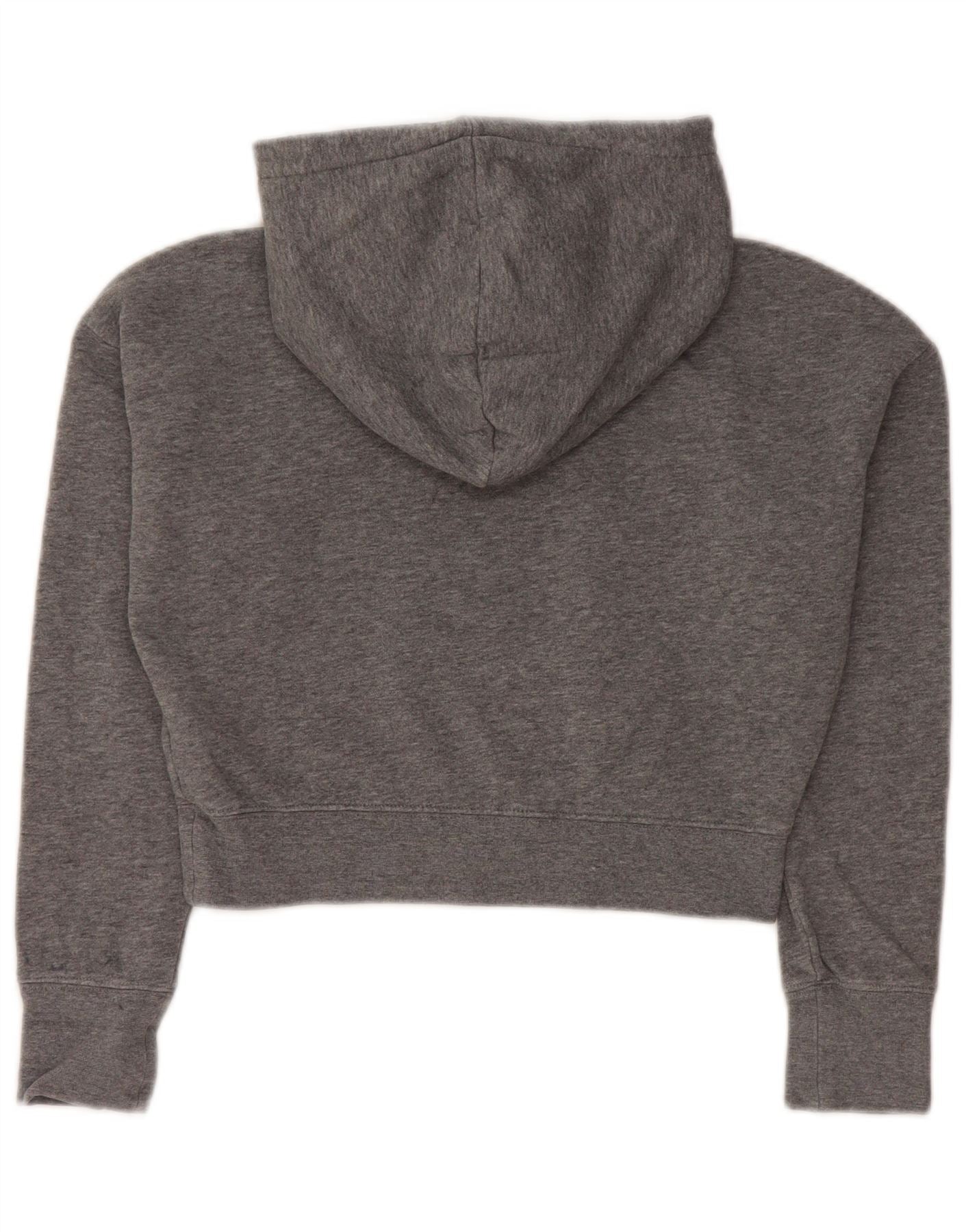 NIKE Girls Crop Graphic Hoodie Jumper 10-11 Years Medium Grey Flecked