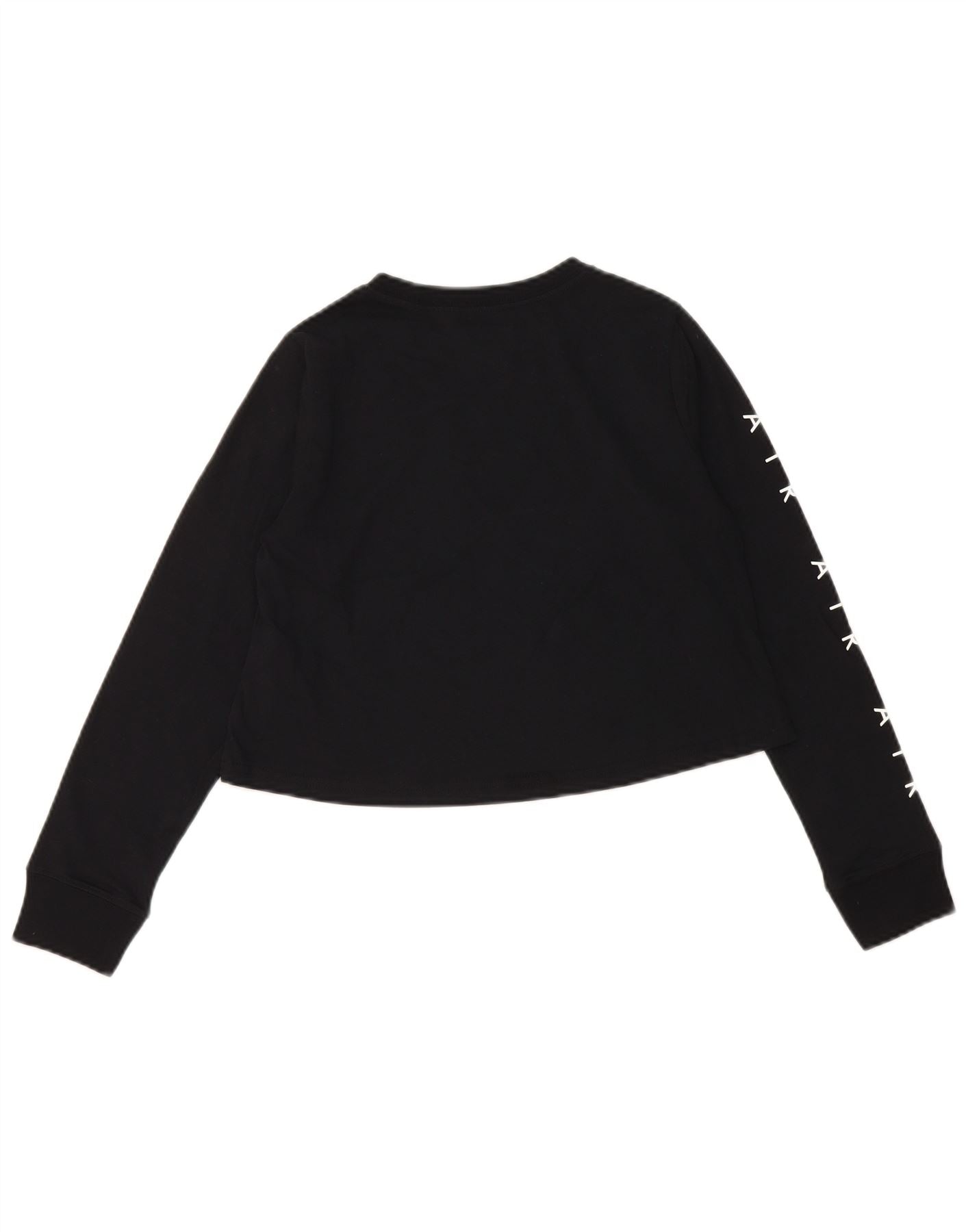 NIKE Girls Crop Graphic Top Long Sleeve 10-11 Years Medium Black Cotton