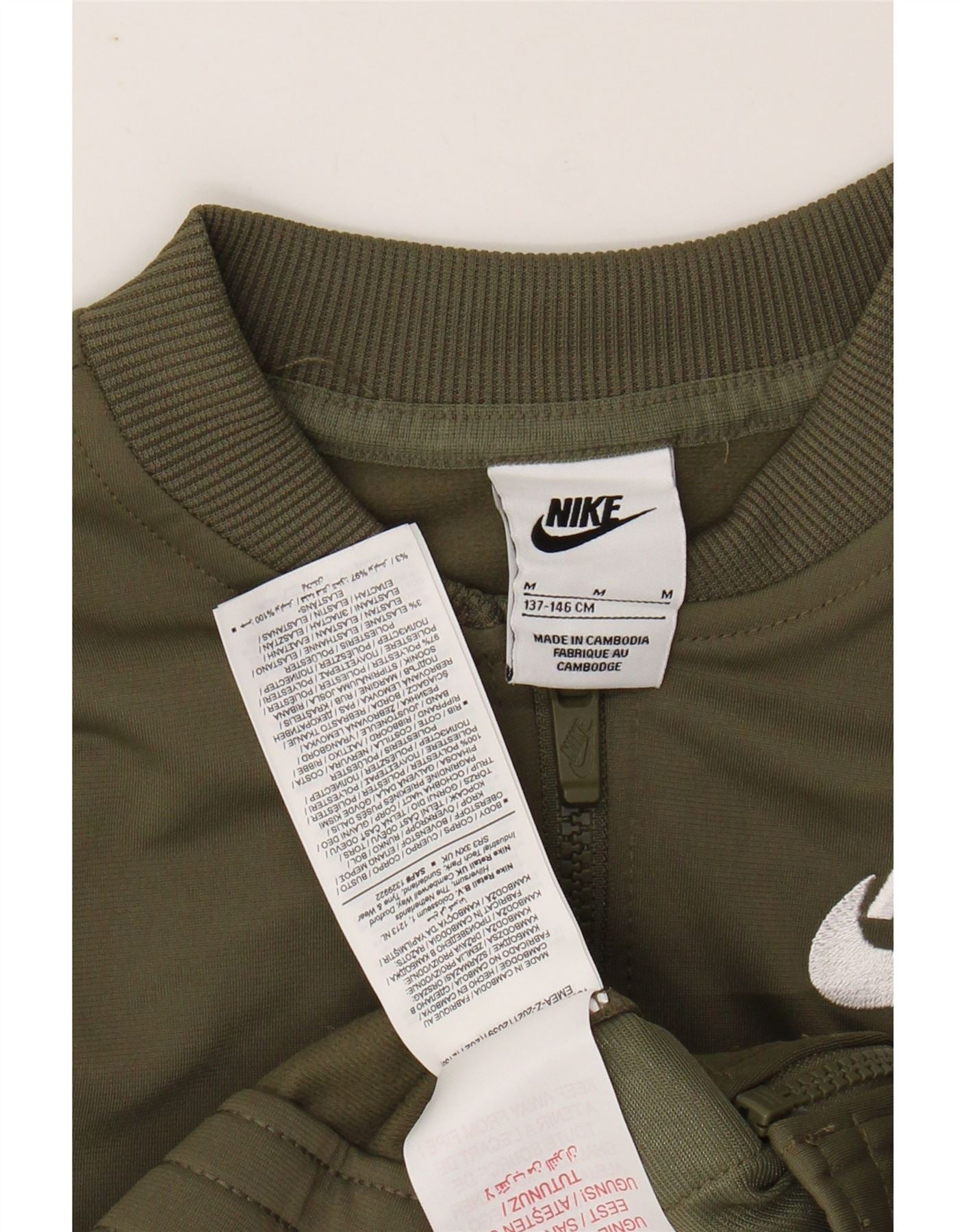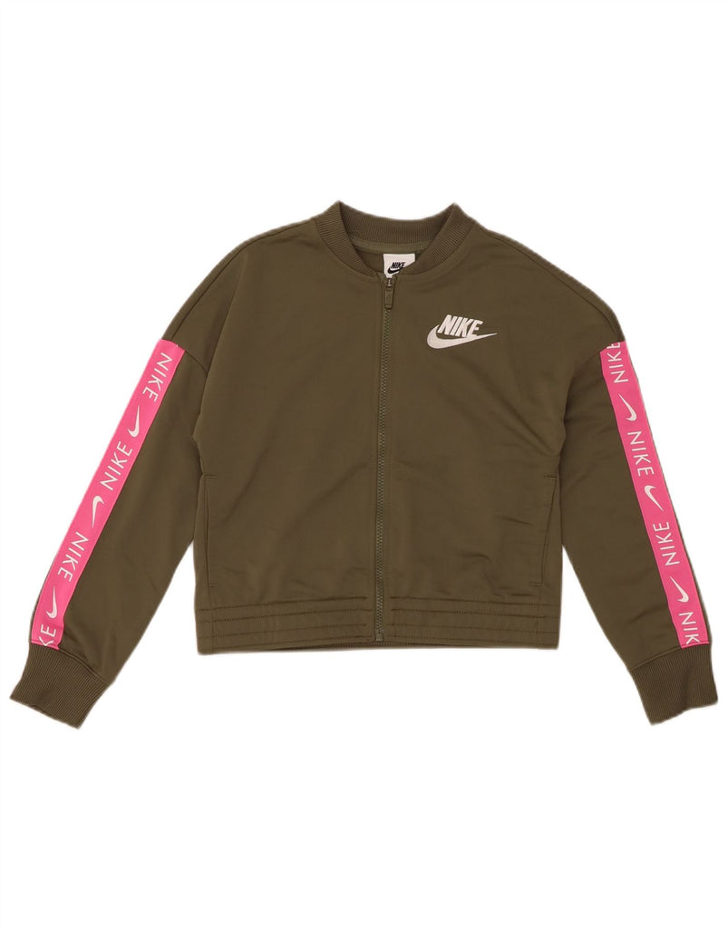 NIKE Girls Crop Tracksuit Top Jacket 10-11 Years Medium Khaki Colourblock