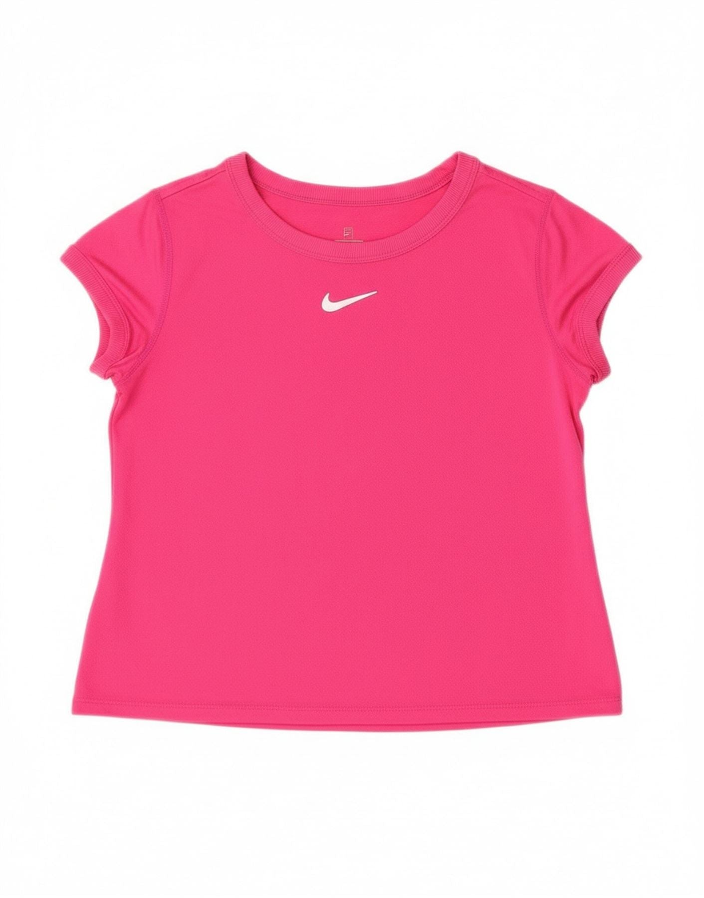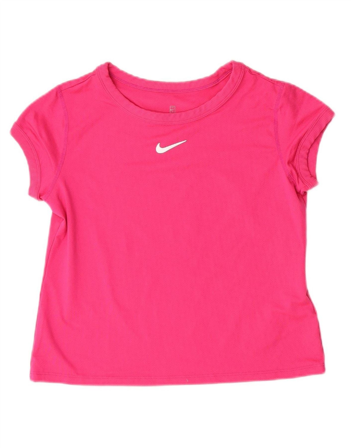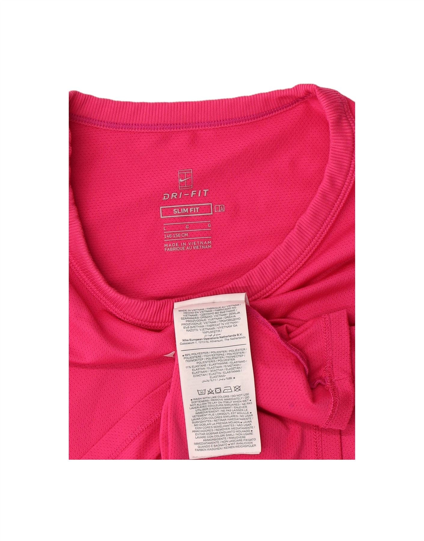 NIKE Girls Dri Fit Slim Fit Graphic T-Shirt Top 12-13 Years Large Pink
