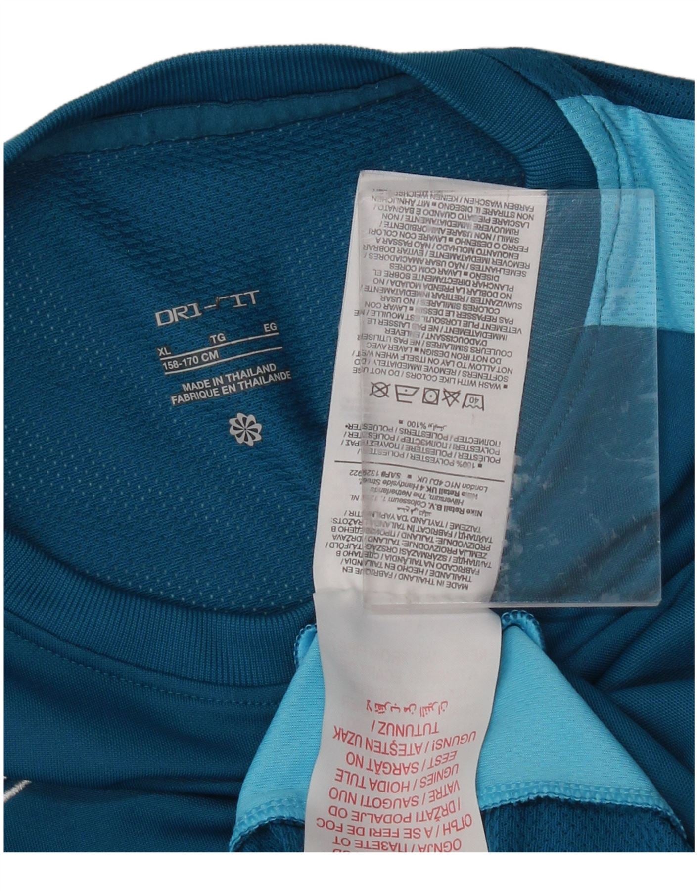 NIKE Girls Dri Fit T-Shirt Top 13-14 Years XL Blue Colourblock Polyester