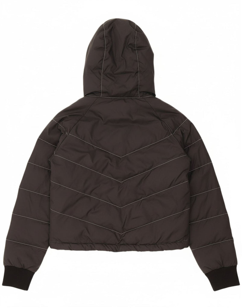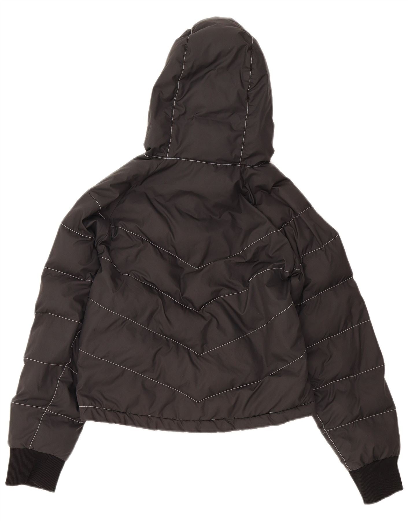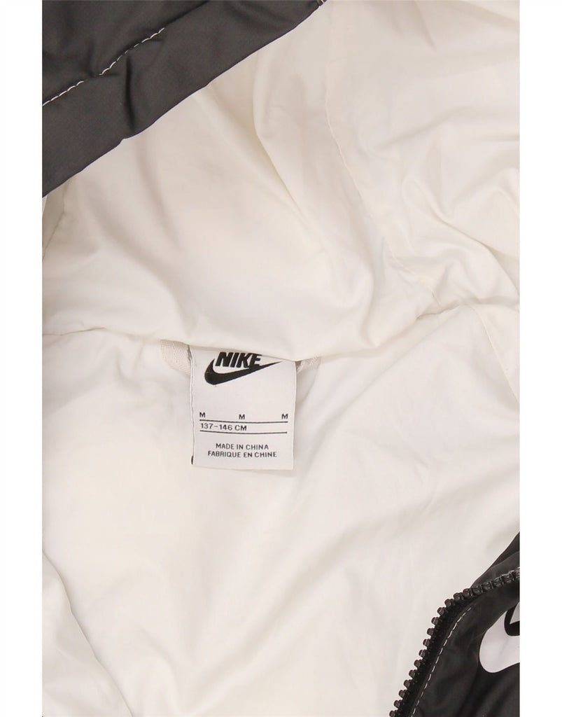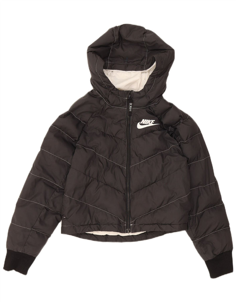 NIKE Girls Graphic Hooded Padded Jacket 10-11 Years Medium Grey Polyester
