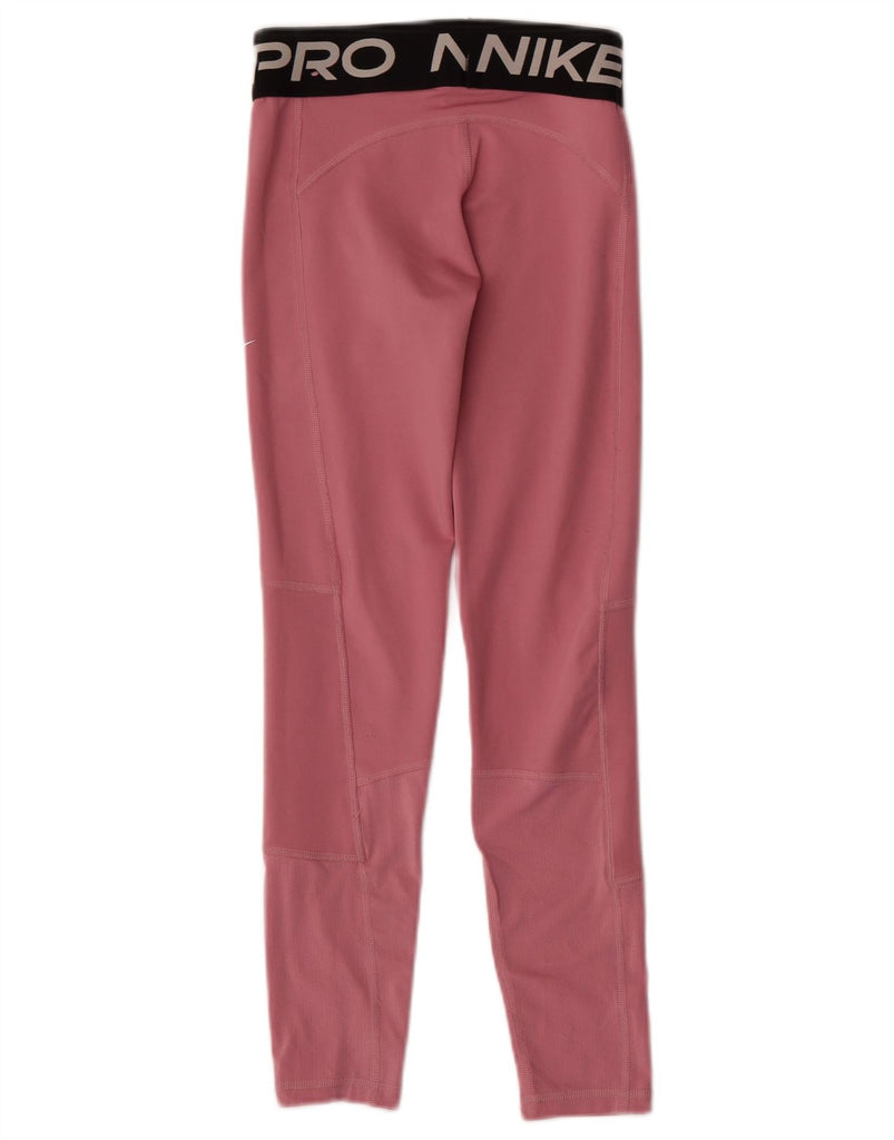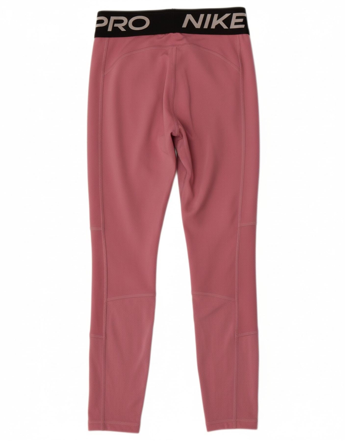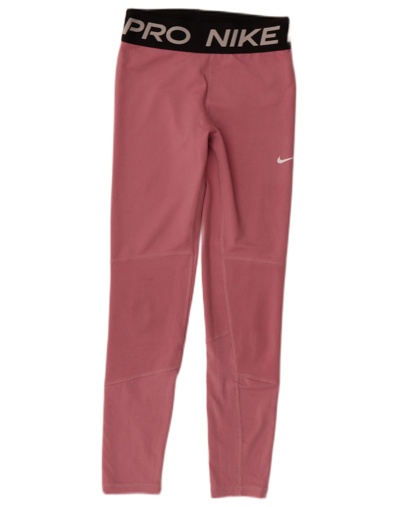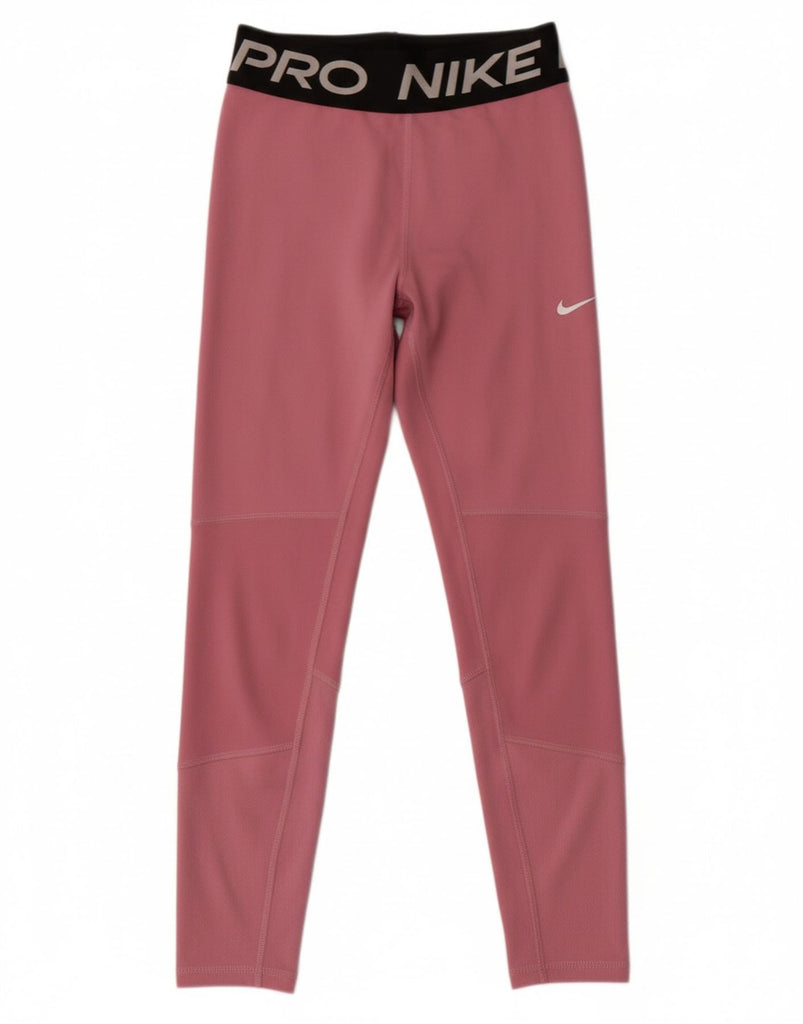 NIKE Girls Graphic Leggings 10-11 Years Medium Pink Colourblock Polyester