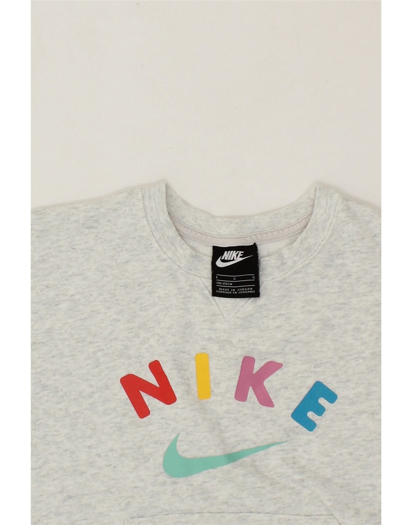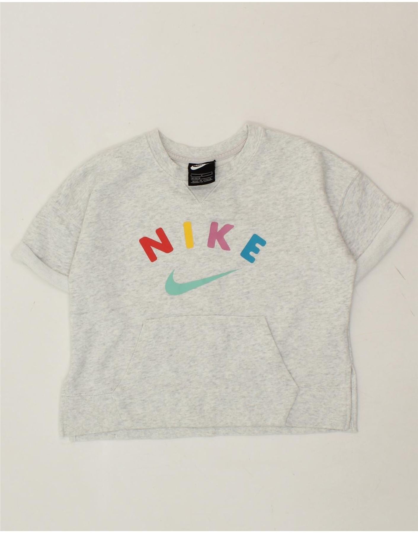 NIKE Girls Graphic Short Sleeve Sweatshirt Jumper 12-13 Years Large Grey