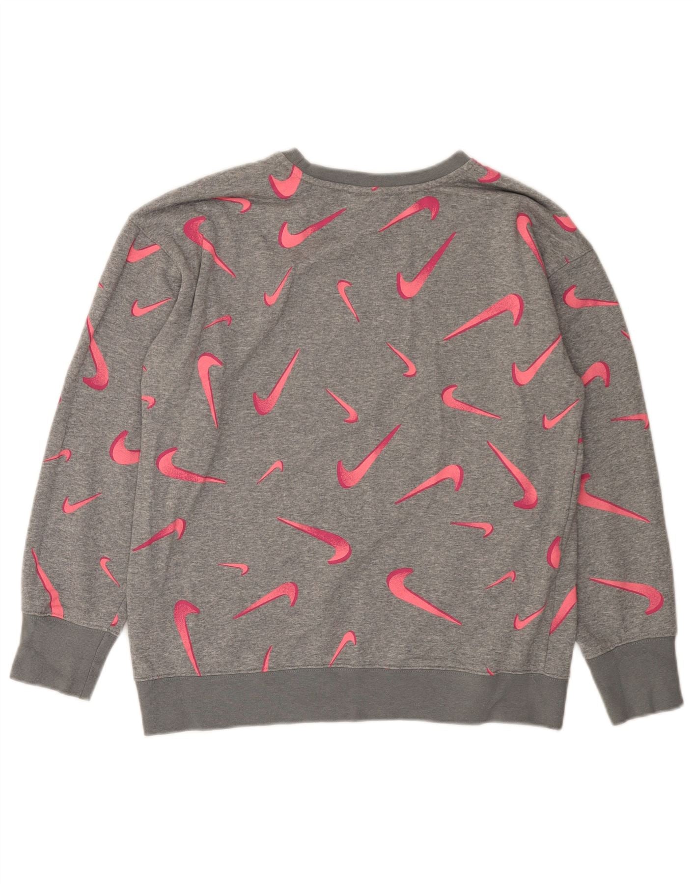 NIKE Girls Graphic Sweatshirt Jumper 13-14 Years XL Grey Geometric
