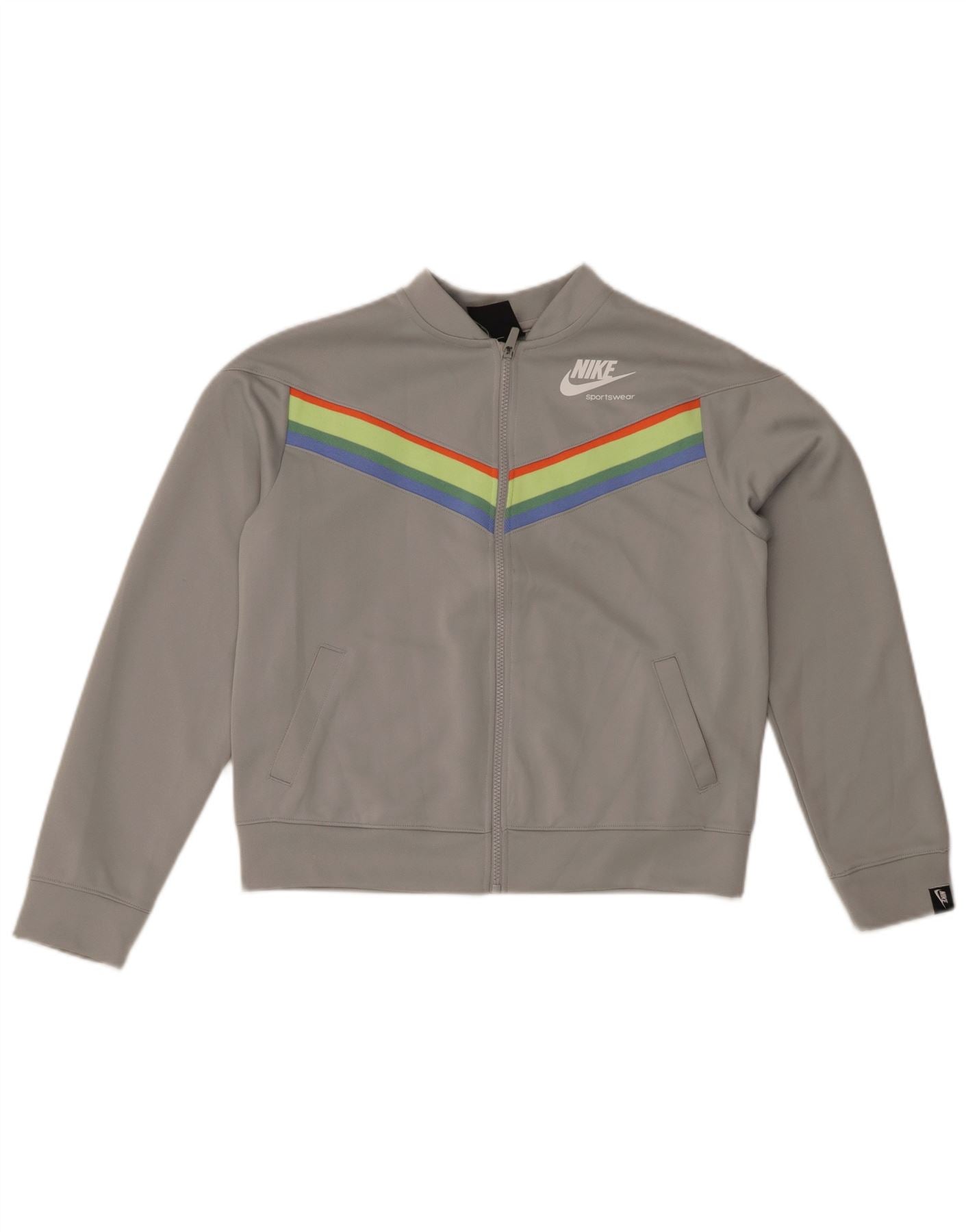 NIKE Girls Loose Fit Tracksuit Top Jacket 13-14 Years XL Grey Colourblock