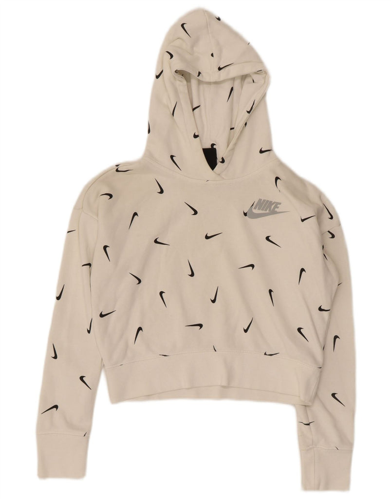 NIKE Girls Standard Crop Graphic Hoodie Jumper 12-13 Years Large White