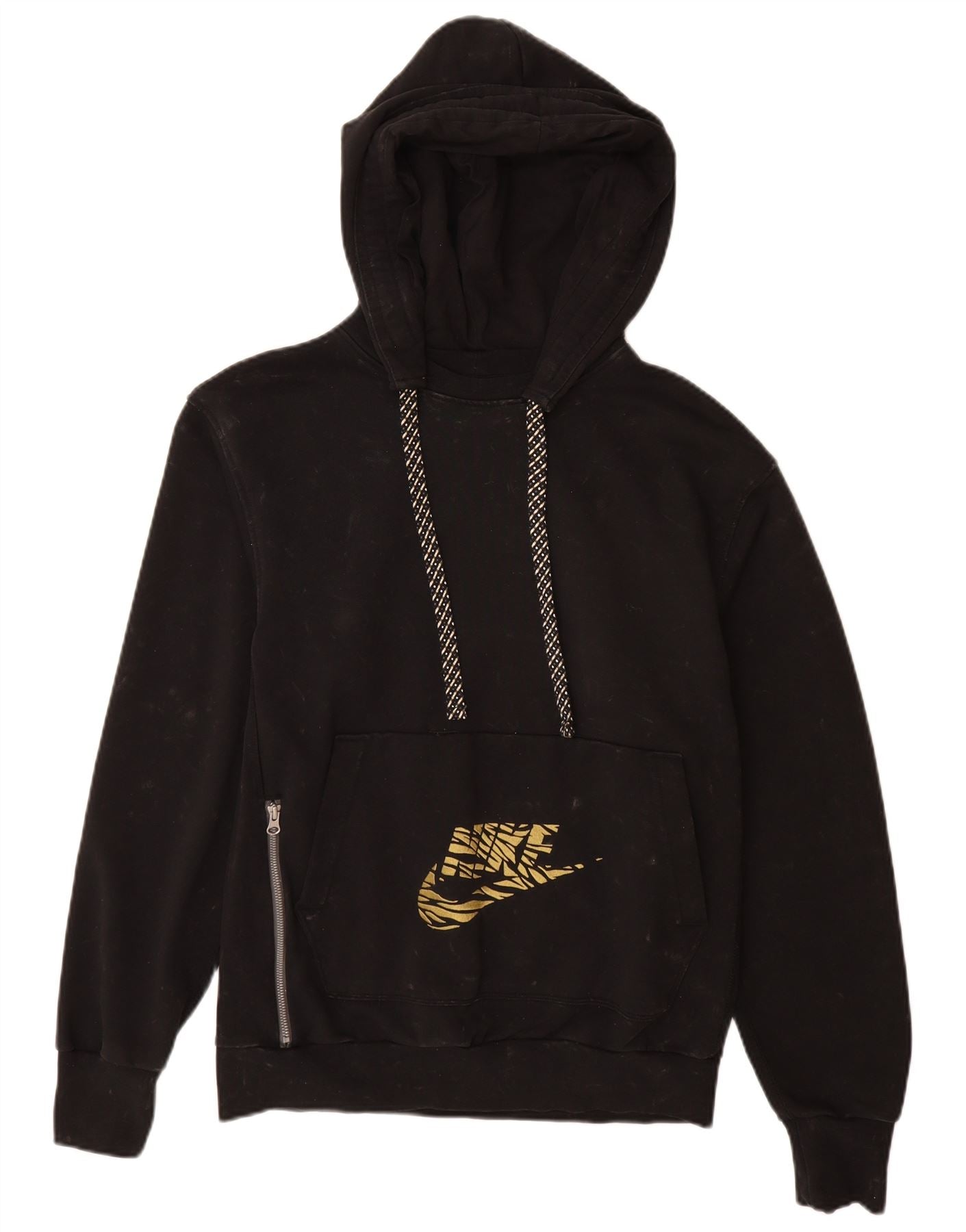 NIKE Mens Dri Fit Graphic Hoodie Jumper Small Black Cotton