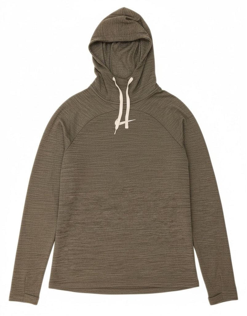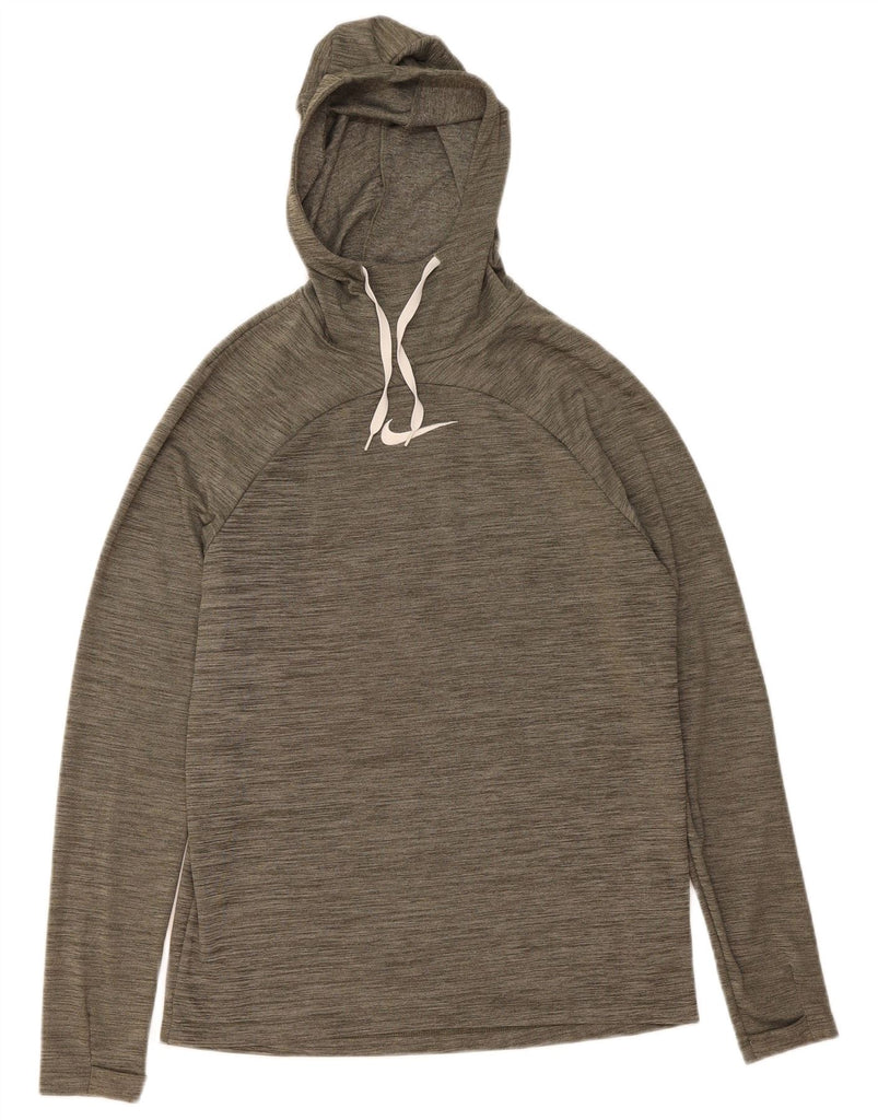 NIKE Mens Dri Fit Hooded Top Long Sleeve Medium Grey Flecked Polyester
