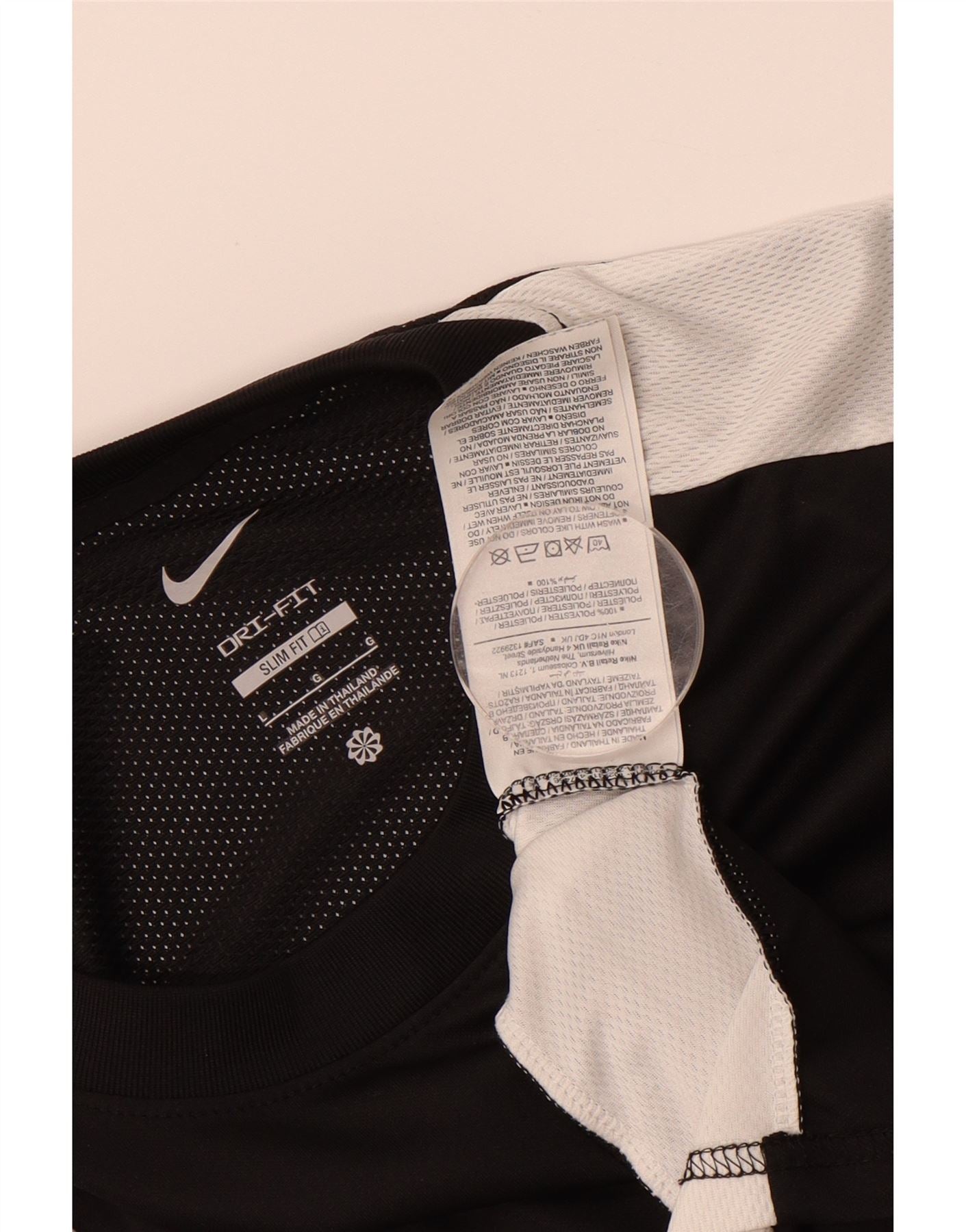 NIKE Mens Dri Fit Slim Fit T-Shirt Top Large Black Colourblock Polyester