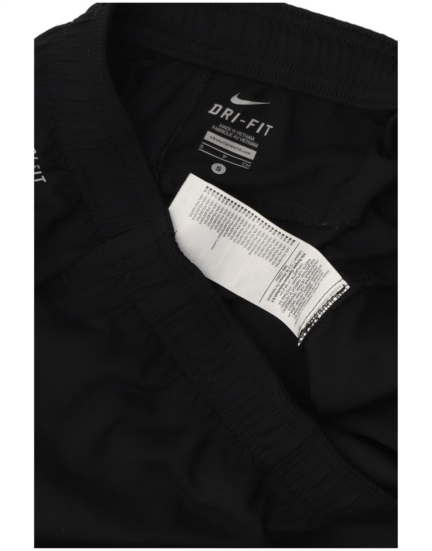 - AI Description: This Nike mens shorts are crafted from lightweight black 100 percent polyester, featuring Dri-FIT technology for comfort. The pull on style includes an elastic waist for a secure, athletic fit. White stripes run down the sides, complementing the iconic Nike swoosh logo. Designed for running, these shorts offer both functionality and a clean, sporty aesthetic.