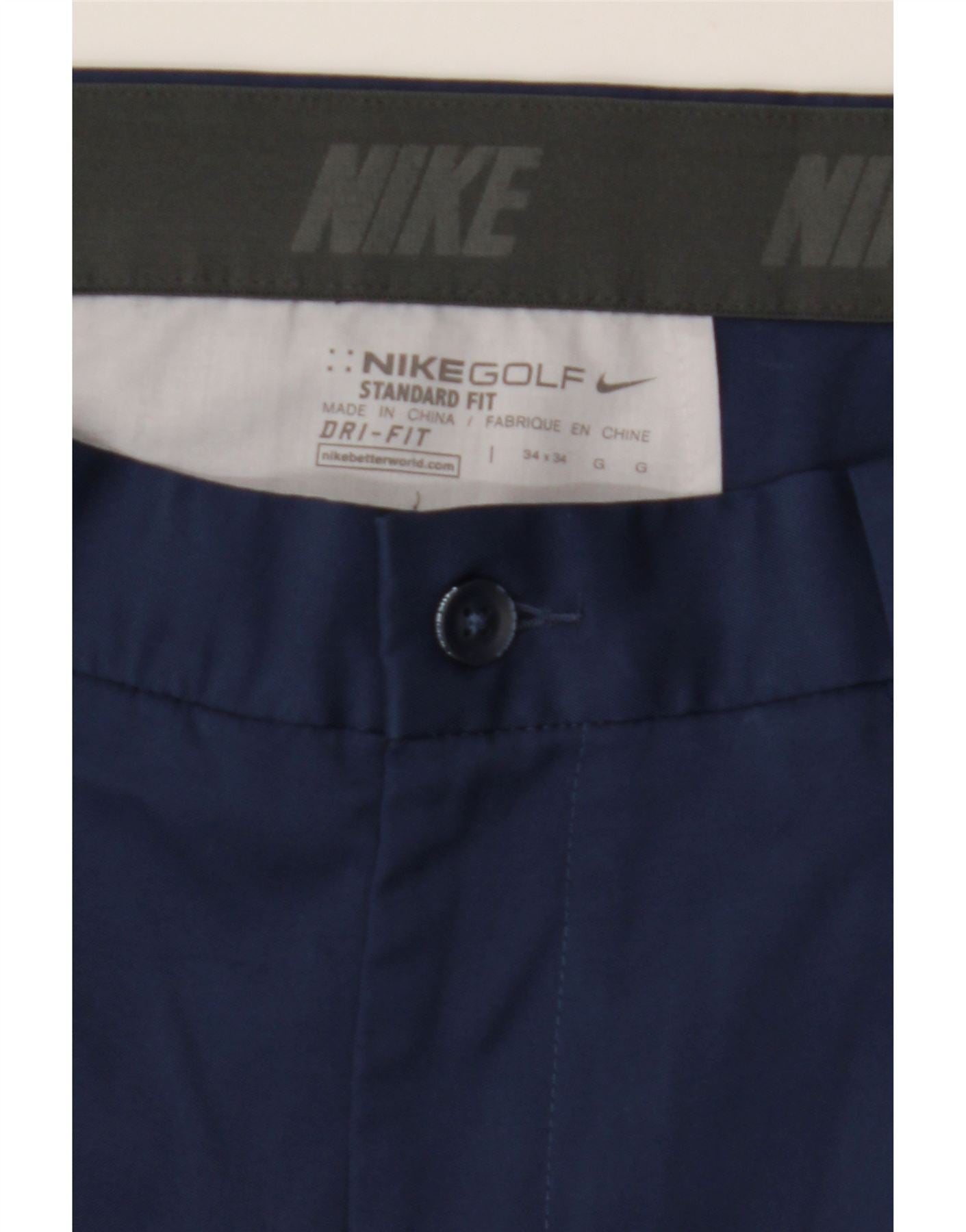 NIKE Mens Dri Fit Standard Fit Casual Trousers W34 L34 Navy Blue Polyester