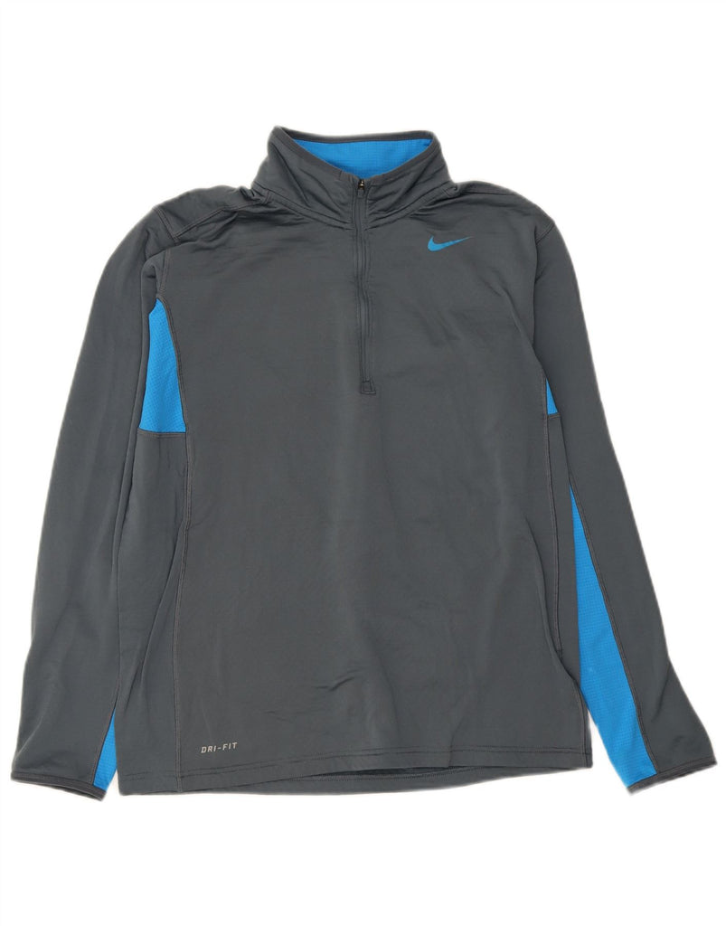 NIKE Mens Dri Fit Zip Neck Pullover Tracksuit Top Medium Grey Colourblock