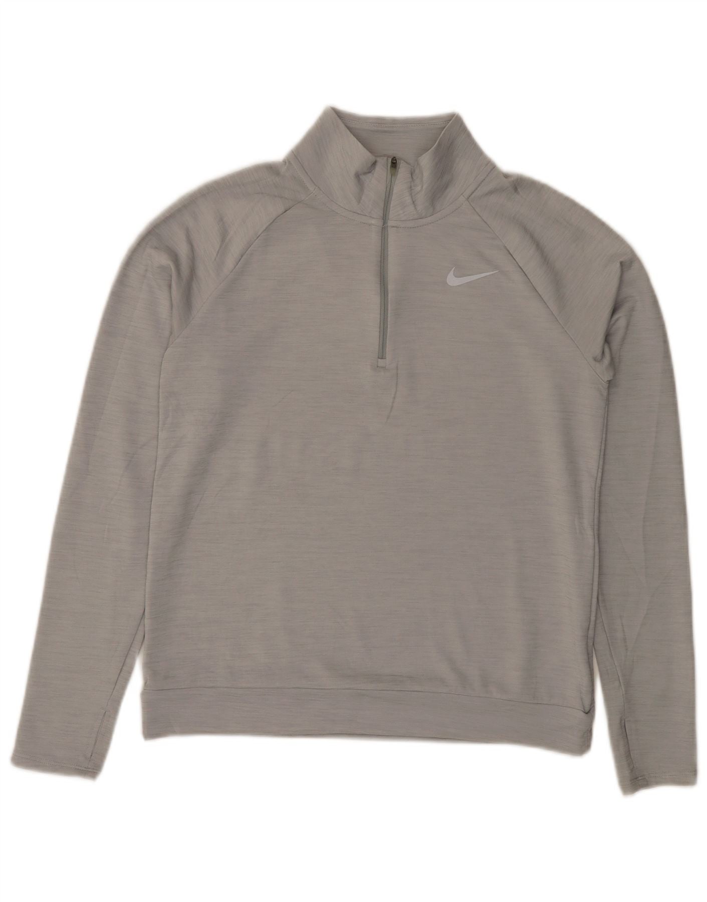 NIKE Mens Dri Fit Zip Neck Pullover Tracksuit Top Small Grey Flecked