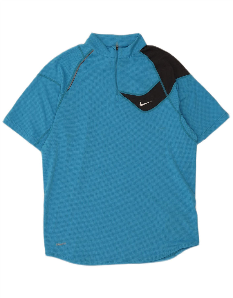NIKE Mens Fit Dry Jersey Top UK 39/41 Medium Blue Colourblock Polyester