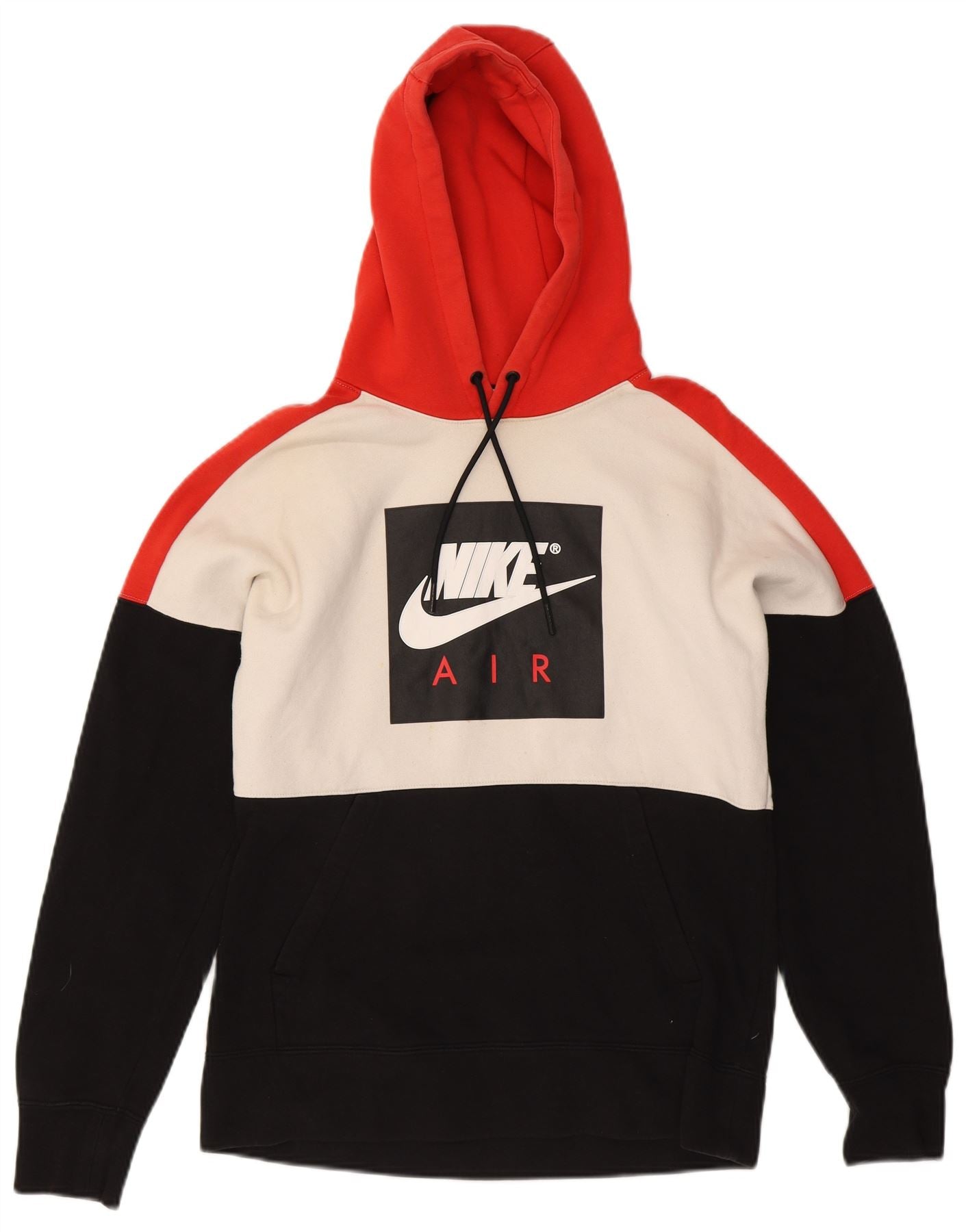 NIKE Mens Graphic Hoodie Jumper Small Multicoloured Colourblock Cotton
