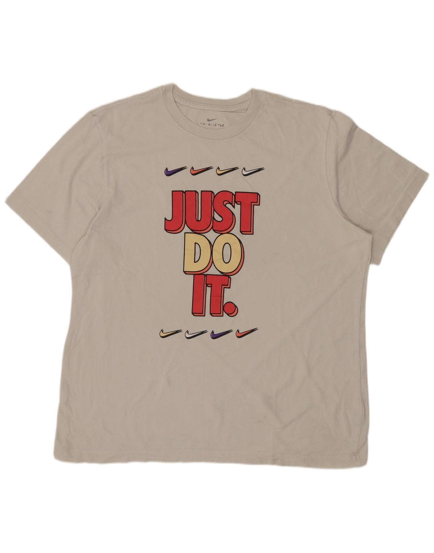 NIKE Mens Graphic T-Shirt Top Large Off White Cotton