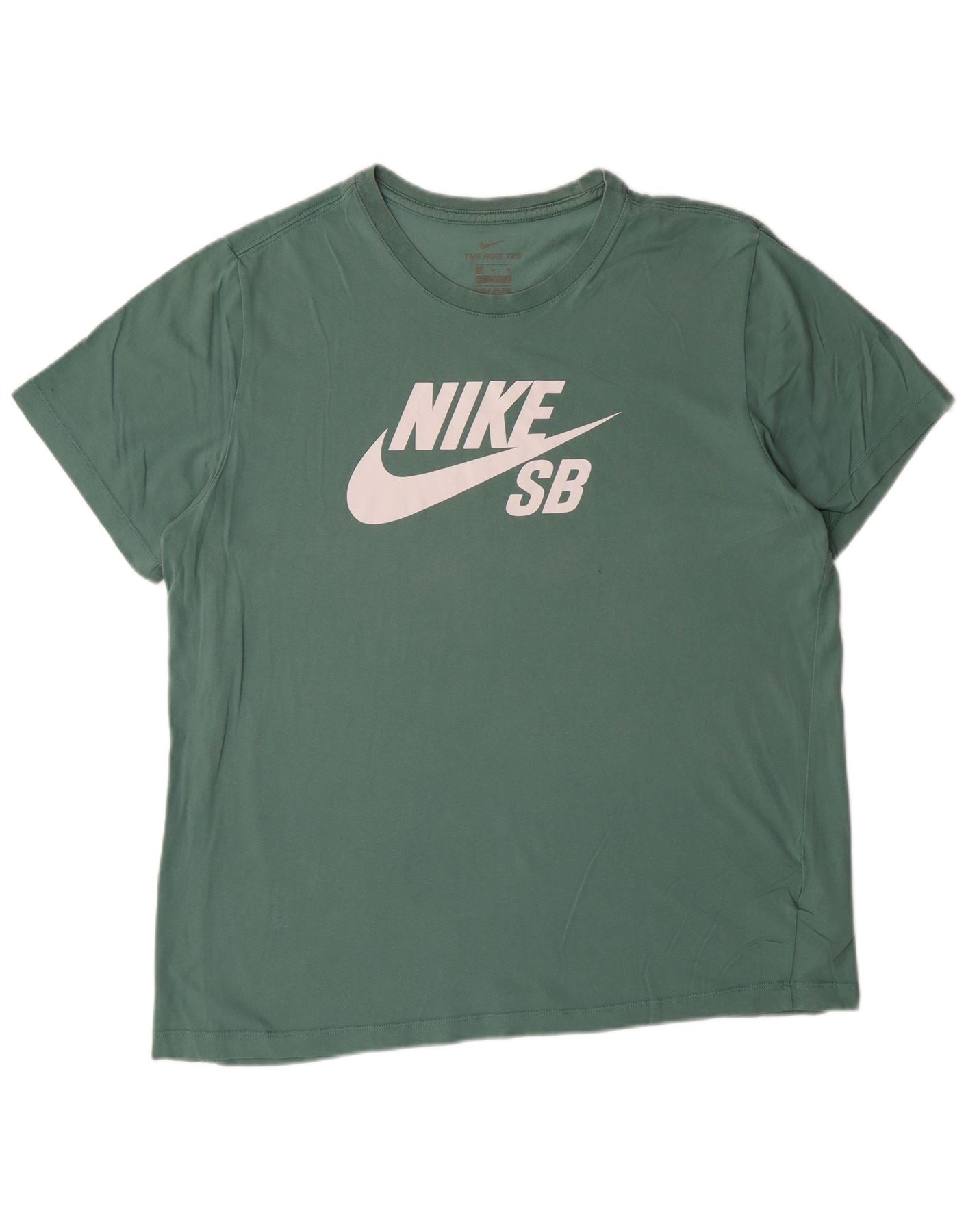 - AI Description: This Nike mens Graphic T-Shirt Top is crafted from soft green jersey fabric. It features a classic round neck and short sleeves. A prominent white Nike SB logo is printed on the chest. The regular fit ensures comfortable wear. This pullover style is ideal for sports or casual everyday outfits.