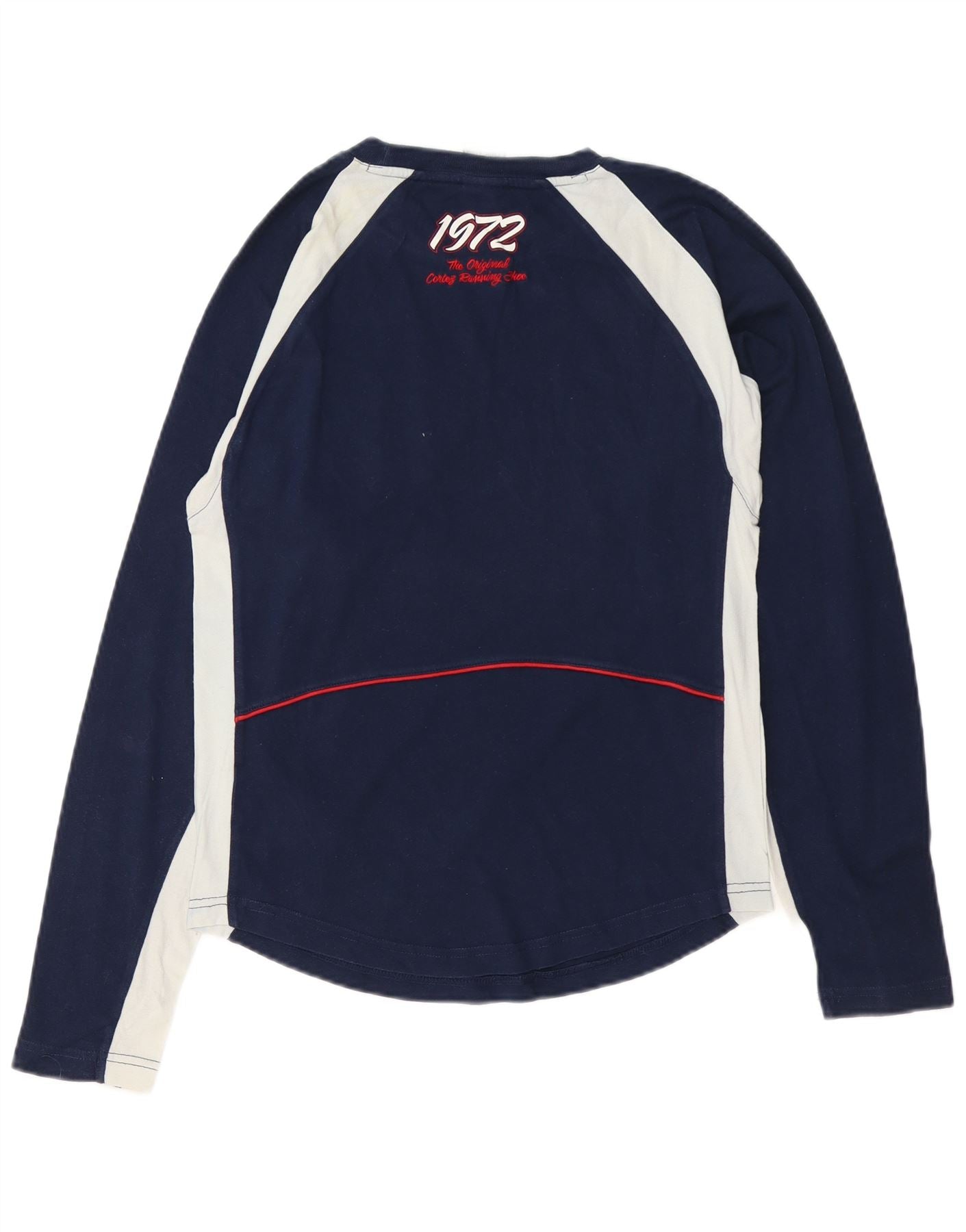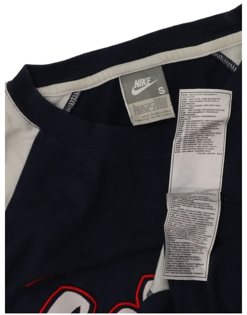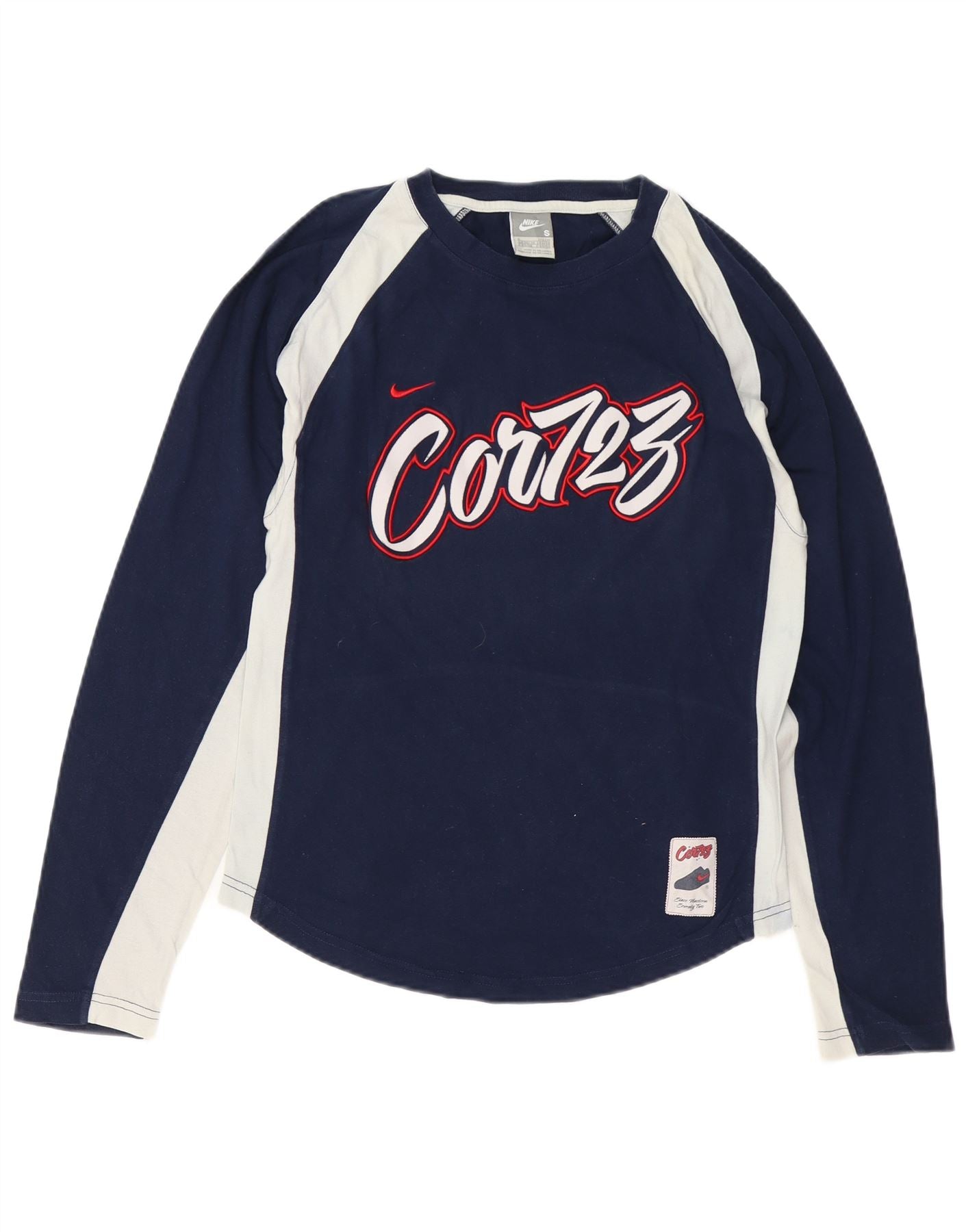 NIKE Mens Graphic Top Long Sleeve Small Navy Blue Colourblock Cotton