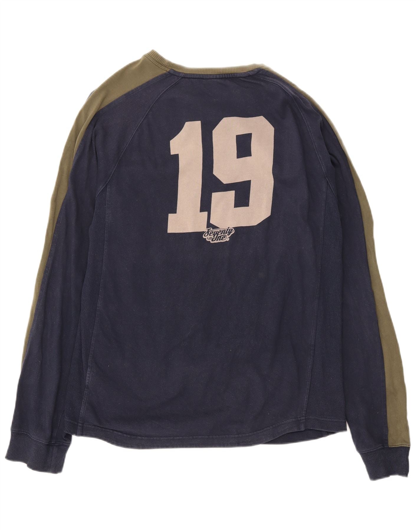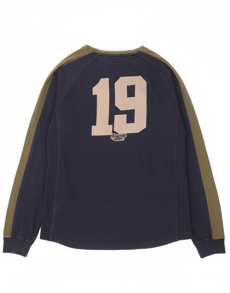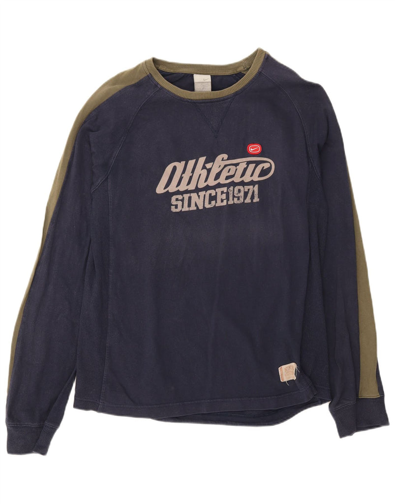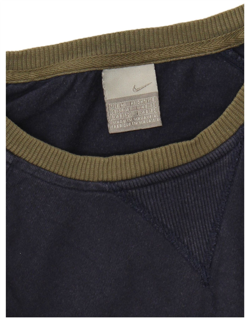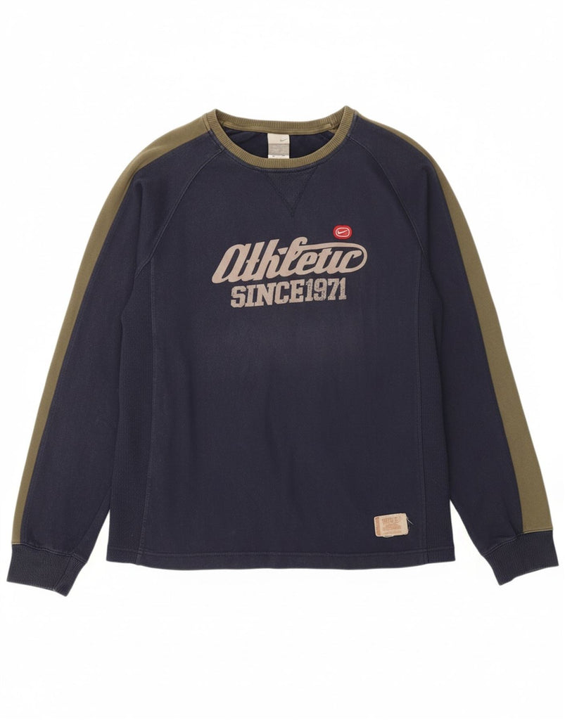 NIKE Mens Graphic Top Long Sleeve UK 39/41 Medium Navy Blue Colourblock