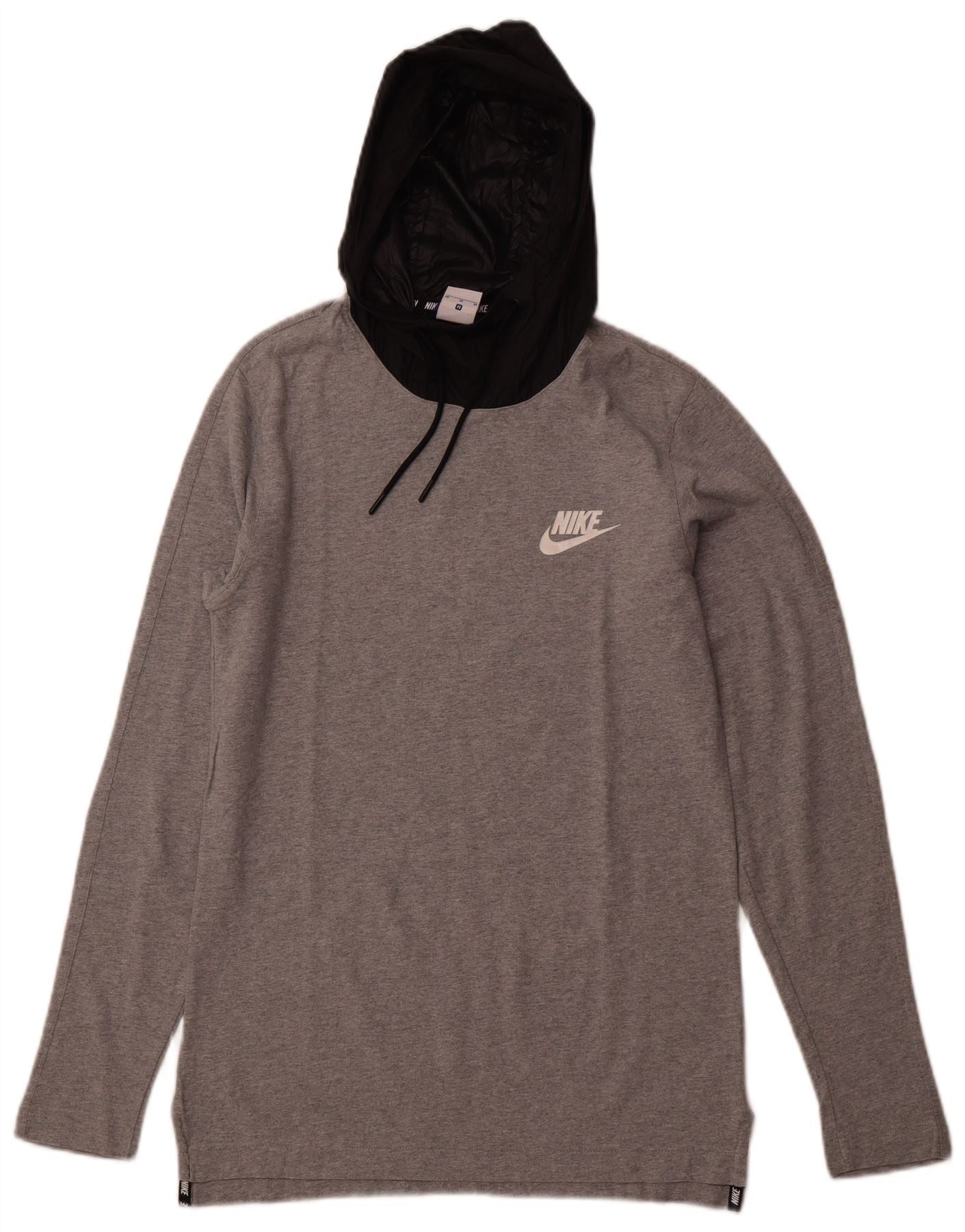 NIKE Mens Hooded Top Long Sleeve Medium Grey Colourblock Cotton