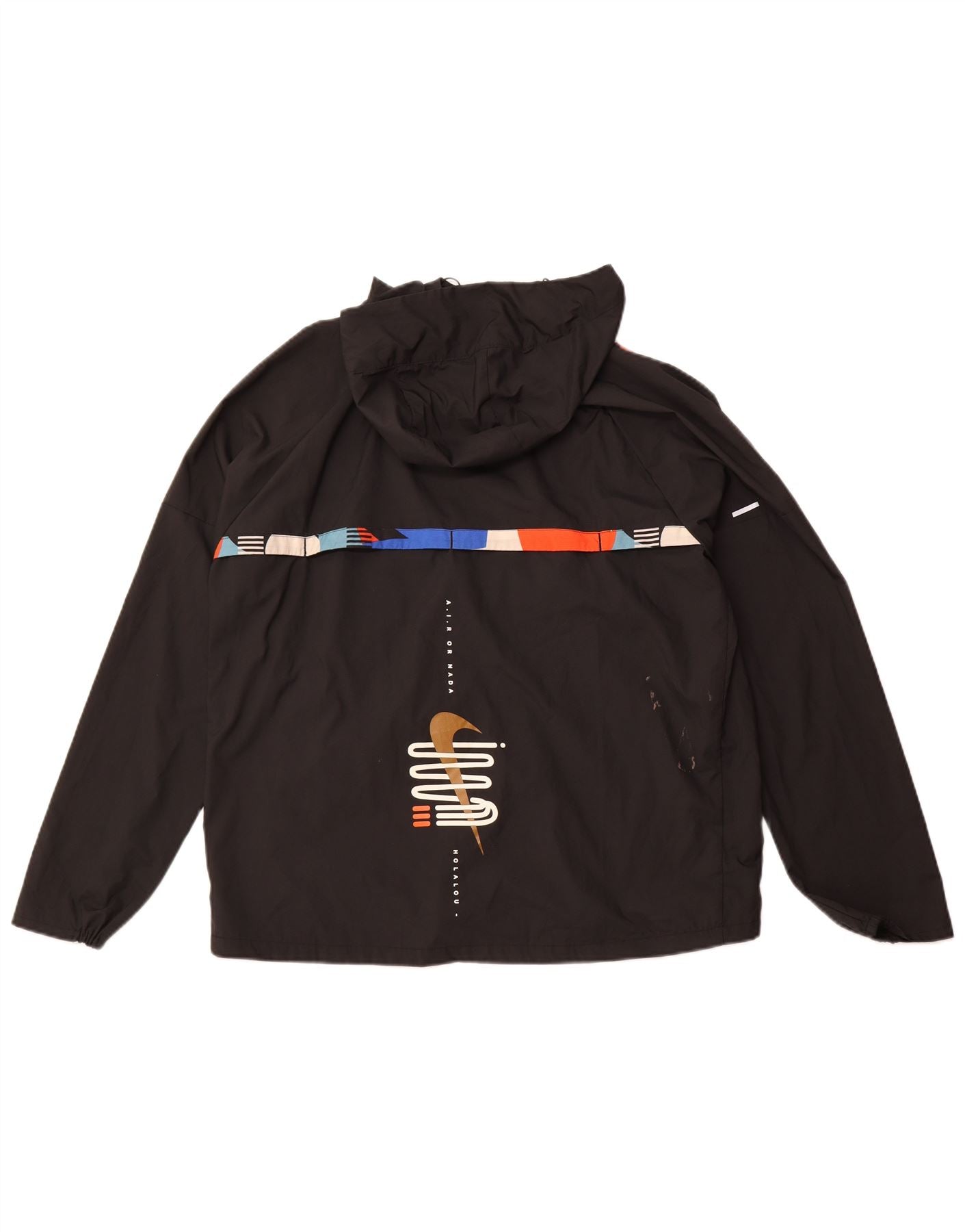 Nike Mens Hooded Tracksuit Top Jacket Large Black Geometric Polyester