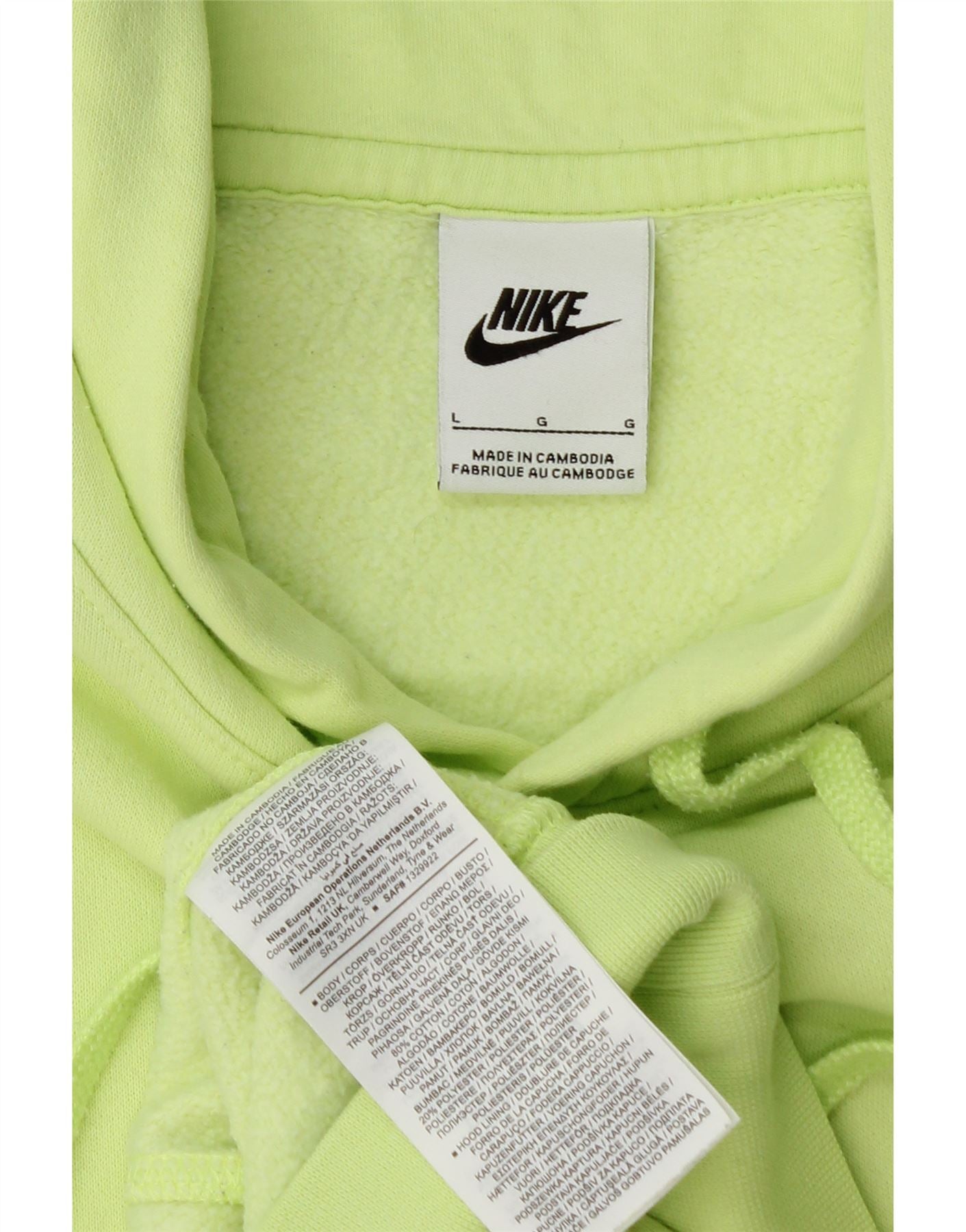 - AI Description: This Nike mens hoodie jumper is crafted from a soft cotton blend fleece fabric in a vibrant green hue. It features a comfortable hooded design with a drawstring for adjustability. Long sleeves and a regular fit ensure ease of movement. A practical kangaroo pocket sits at the front. The chest displays a subtle embroidered Nike logo, adding a signature touch. This pullover style offers everyday comfort and a relaxed silhouette.