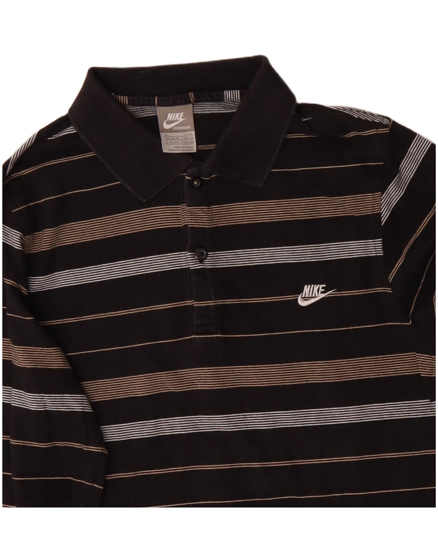 NIKE Mens Long Sleeve Polo Shirt Small Black Striped Cotton