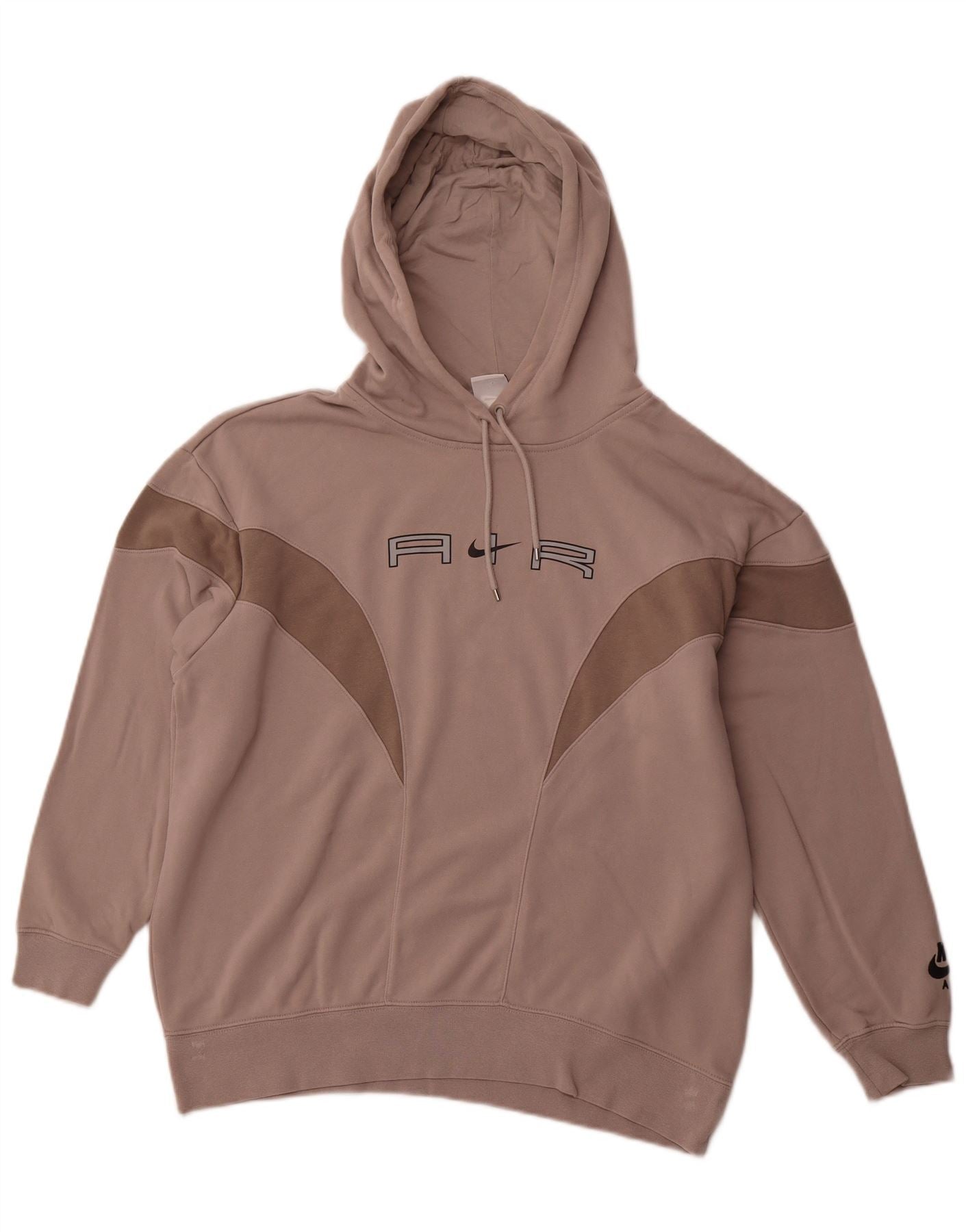 NIKE Mens Loose Fit Graphic Hoodie Jumper Small Brown Colourblock Cotton