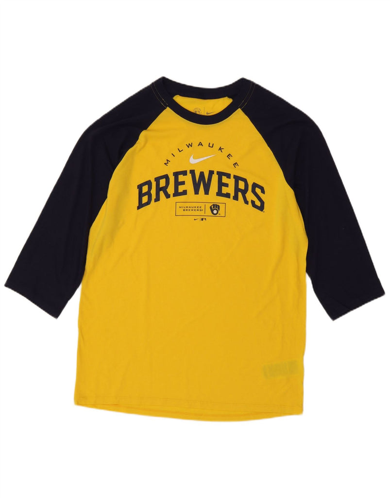 NIKE Mens Milwaukee Brewers Graphic Top 3/4 Sleeve Medium Yellow