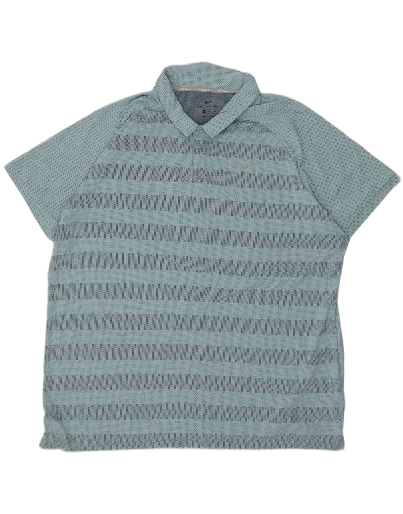 NIKE Mens Polo Shirt 2XL Blue Striped Polyester