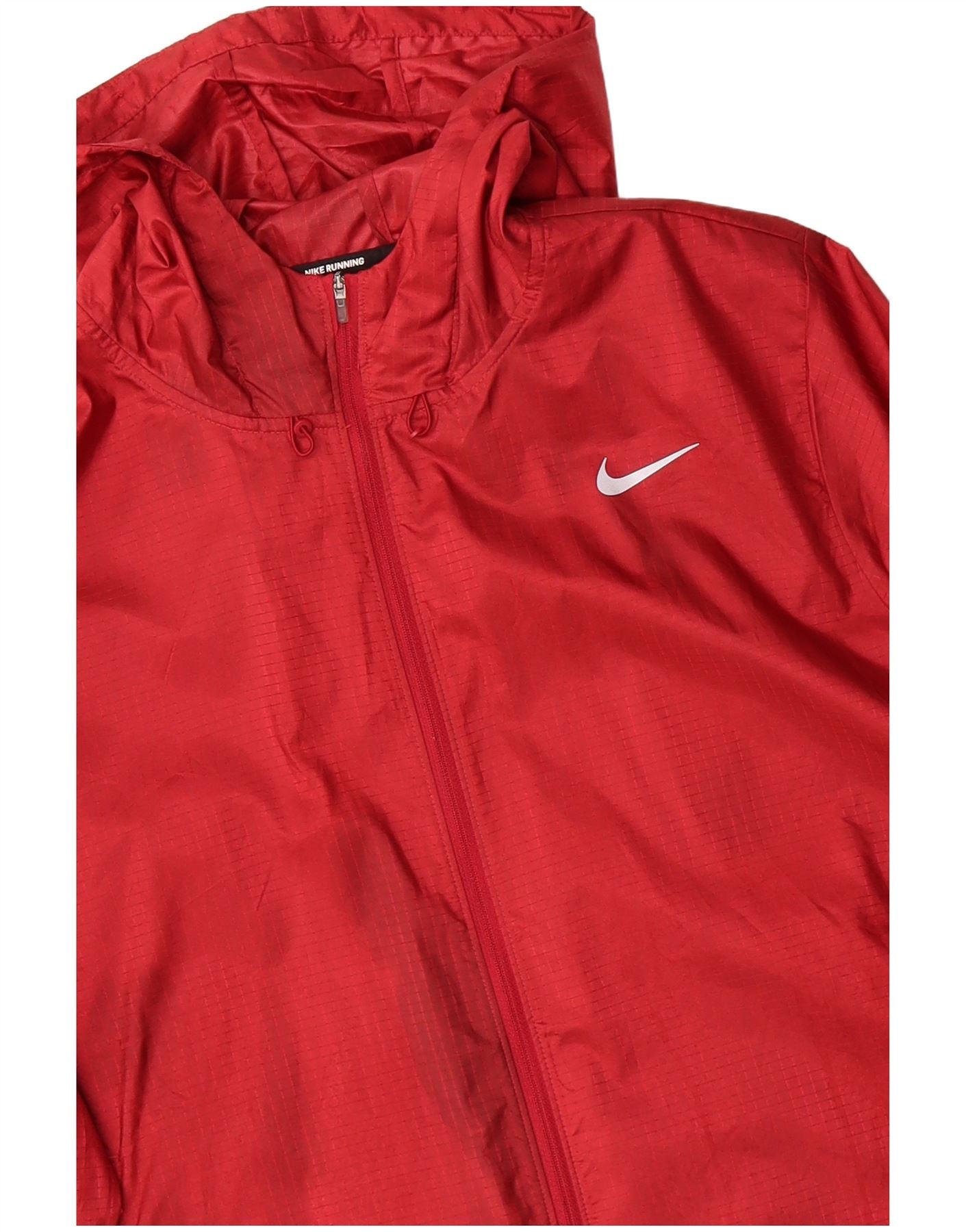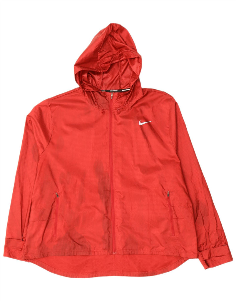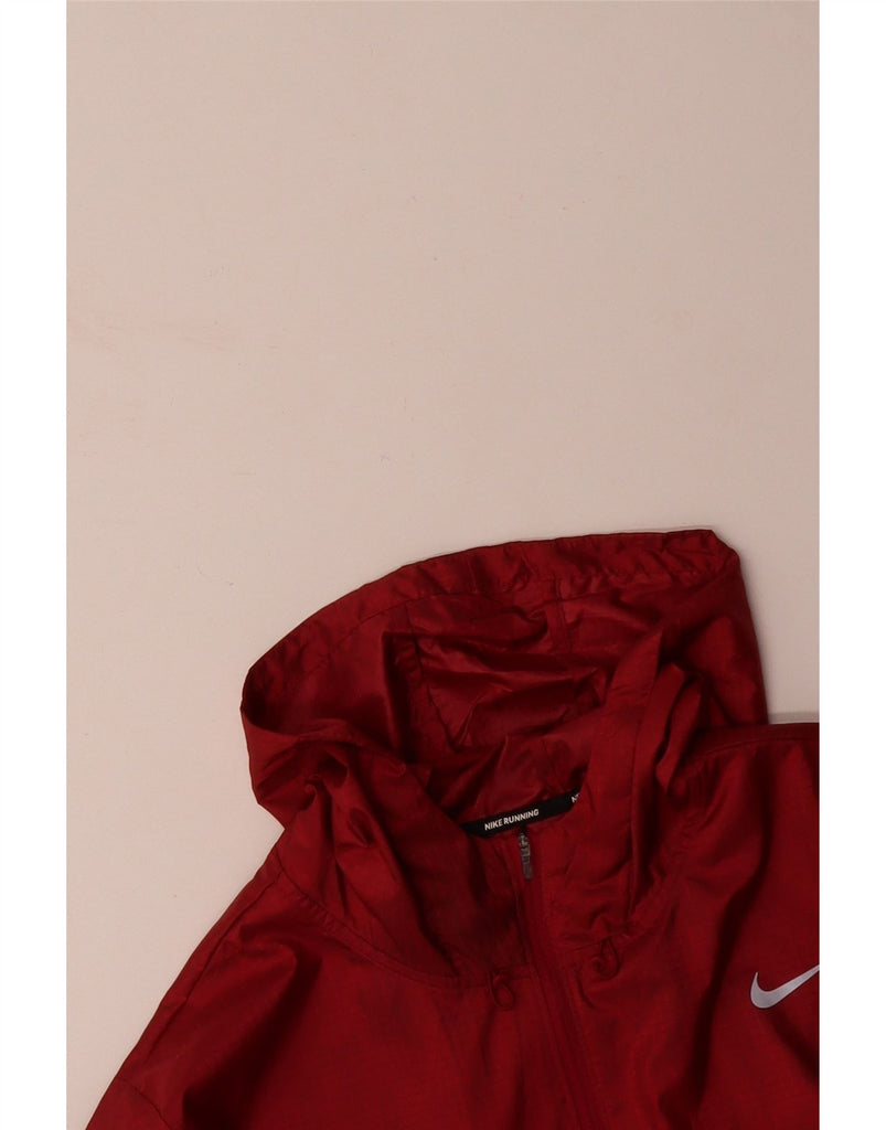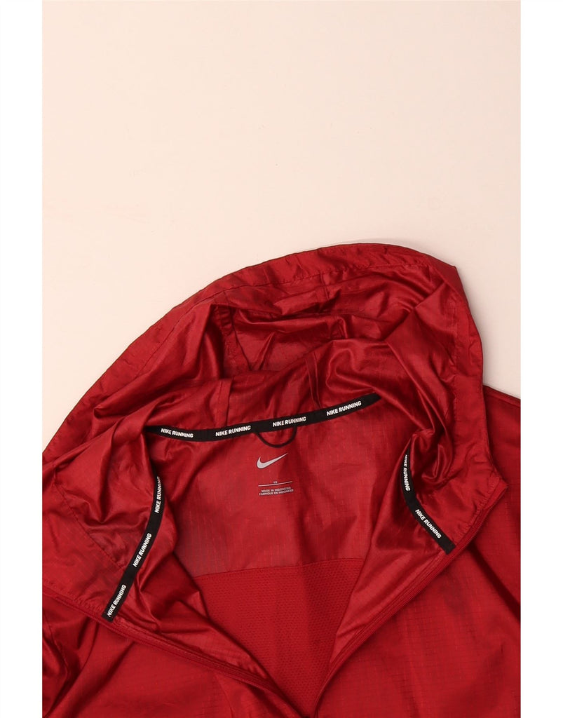 NIKE Mens Running Hooded Rain Jacket UK 42 XL Red Check Polyester