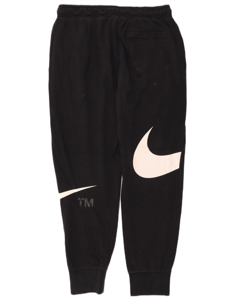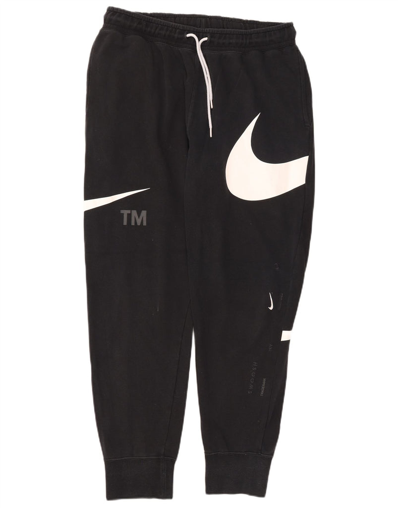 NIKE Mens Swoosh Graphic Tracksuit Trousers Joggers Large Black Cotton