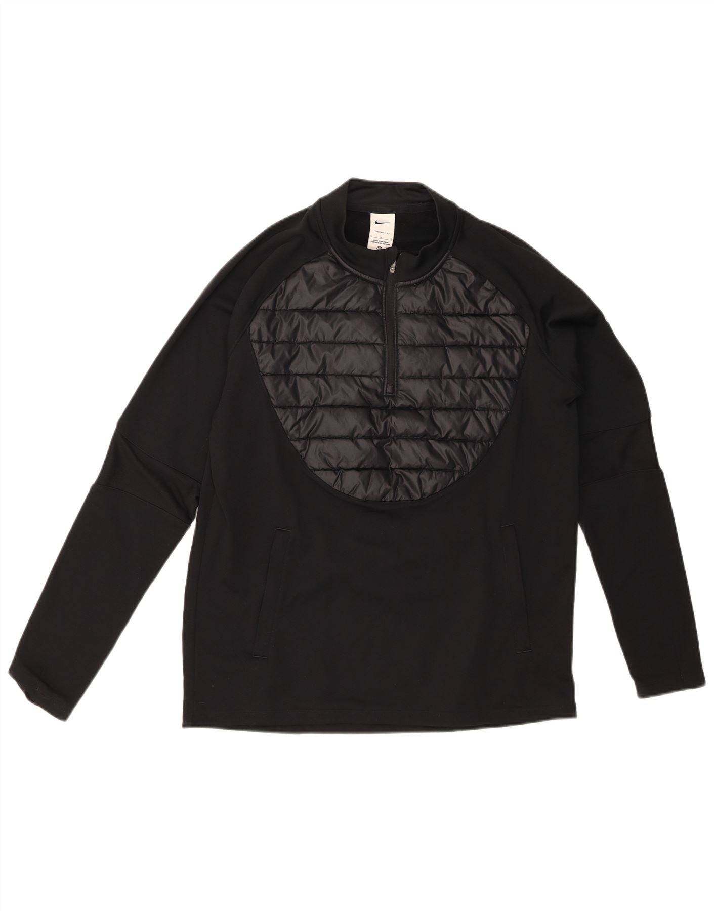 NIKE Mens Therma-Fit Zip Neck Pullover Tracksuit Top Large Black Polyester