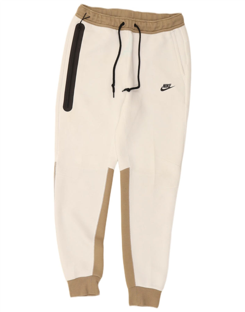 NIKE Mens Tracksuit Trousers Joggers Medium White Colourblock Cotton