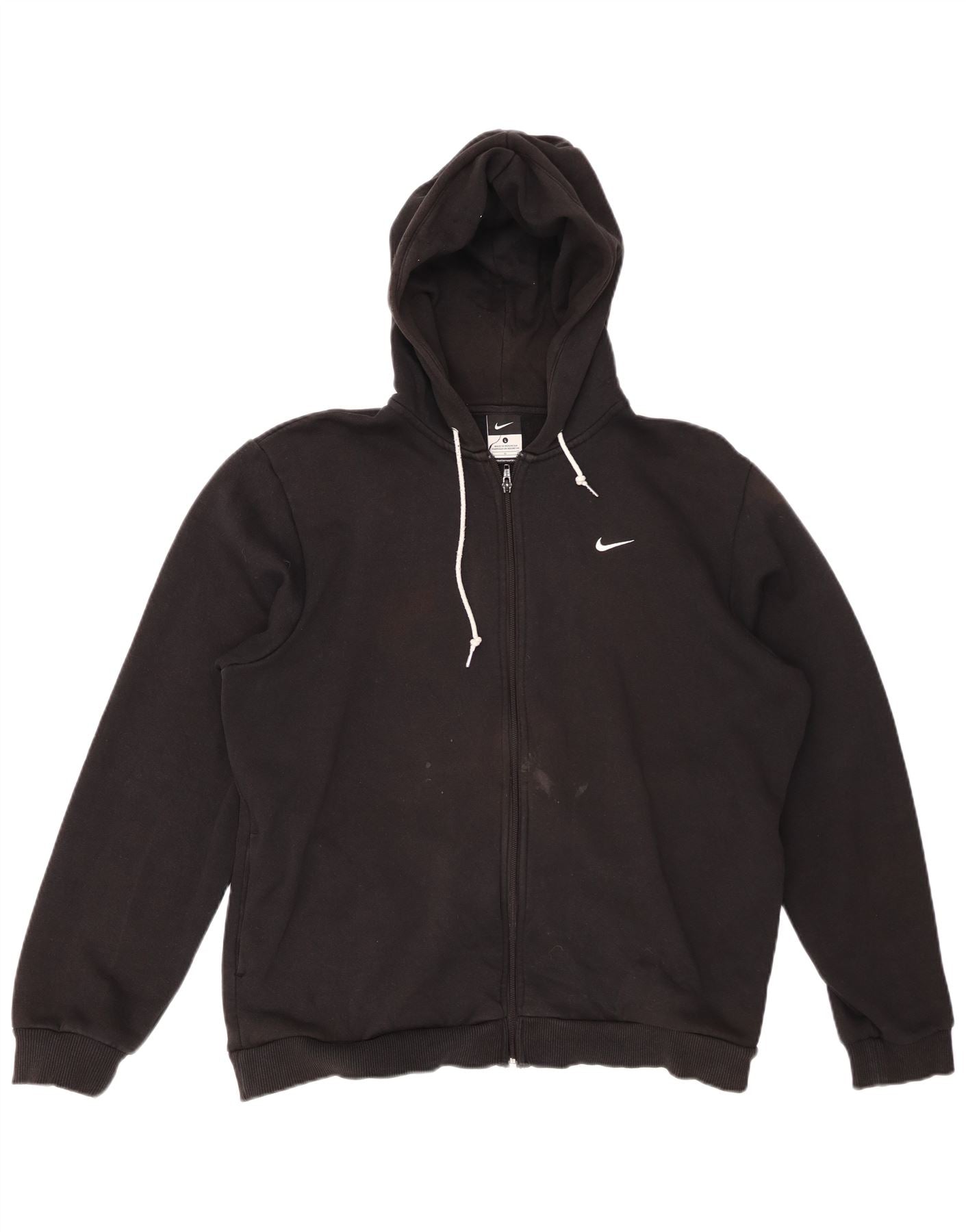 NIKE Mens Zip Hoodie Sweater Large Black Cotton