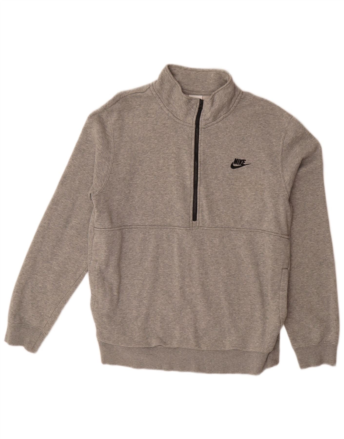 NIKE Mens Zip Neck Sweatshirt Jumper Large Grey Cotton