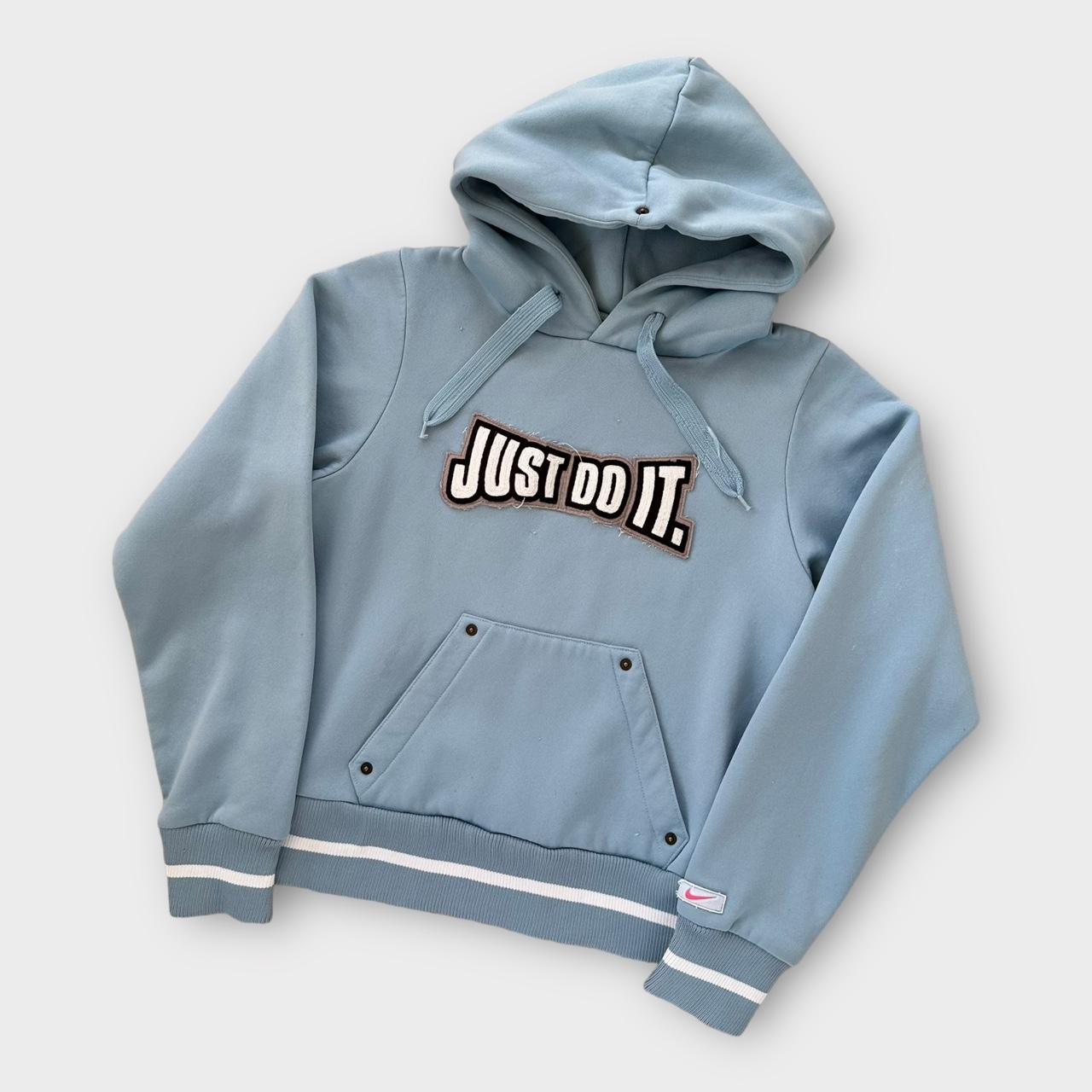 Early 2000’s baby blue Nike hoodie with embroidered spell out across the chest