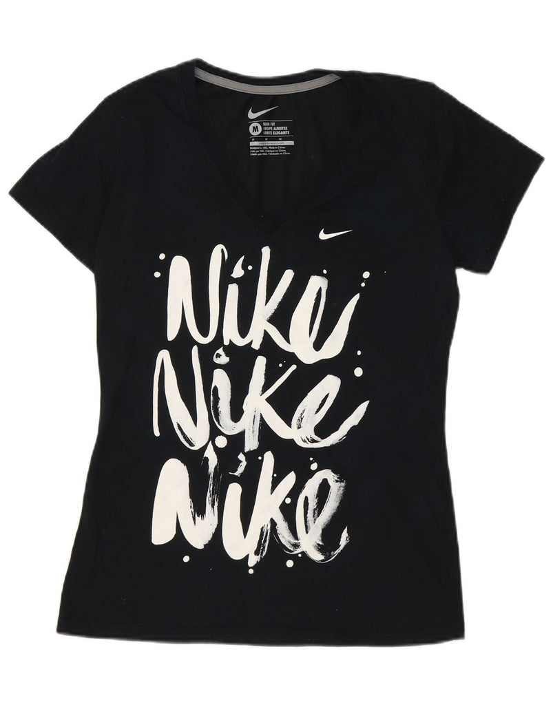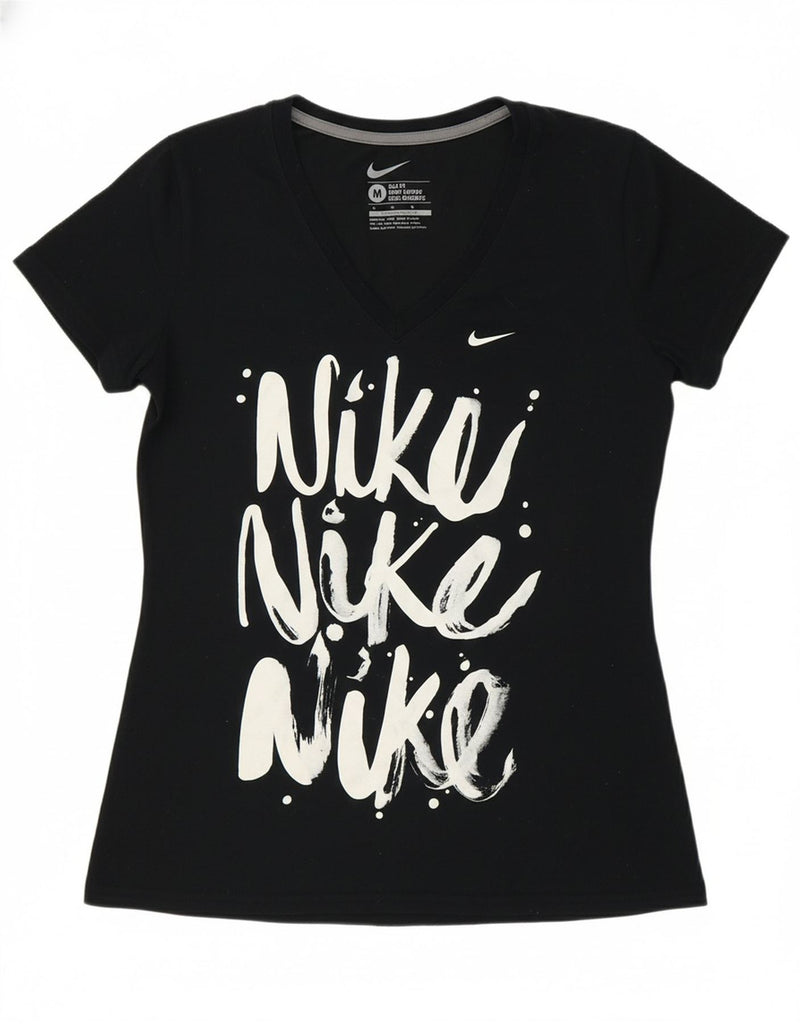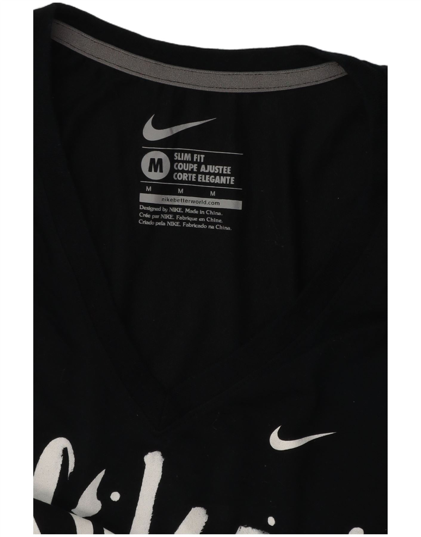 NIKE Womens Coupe Ajustee Slim Fit Graphic T-Shirt Top UK 12 Medium Black