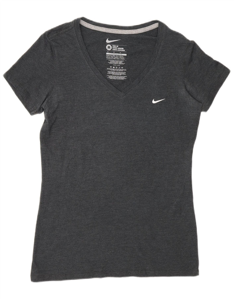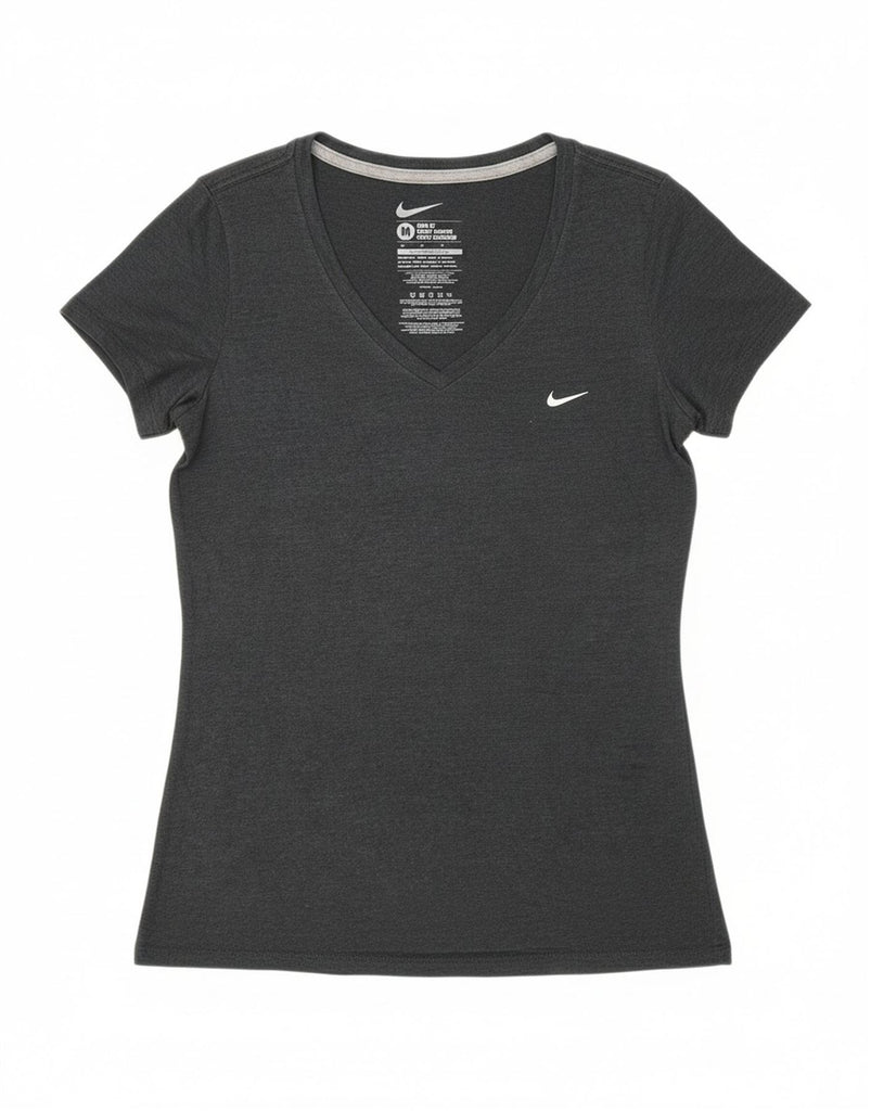 NIKE Womens Coupe Ajustee Slim Fit T-Shirt Top UK 12 Medium Grey Polyester