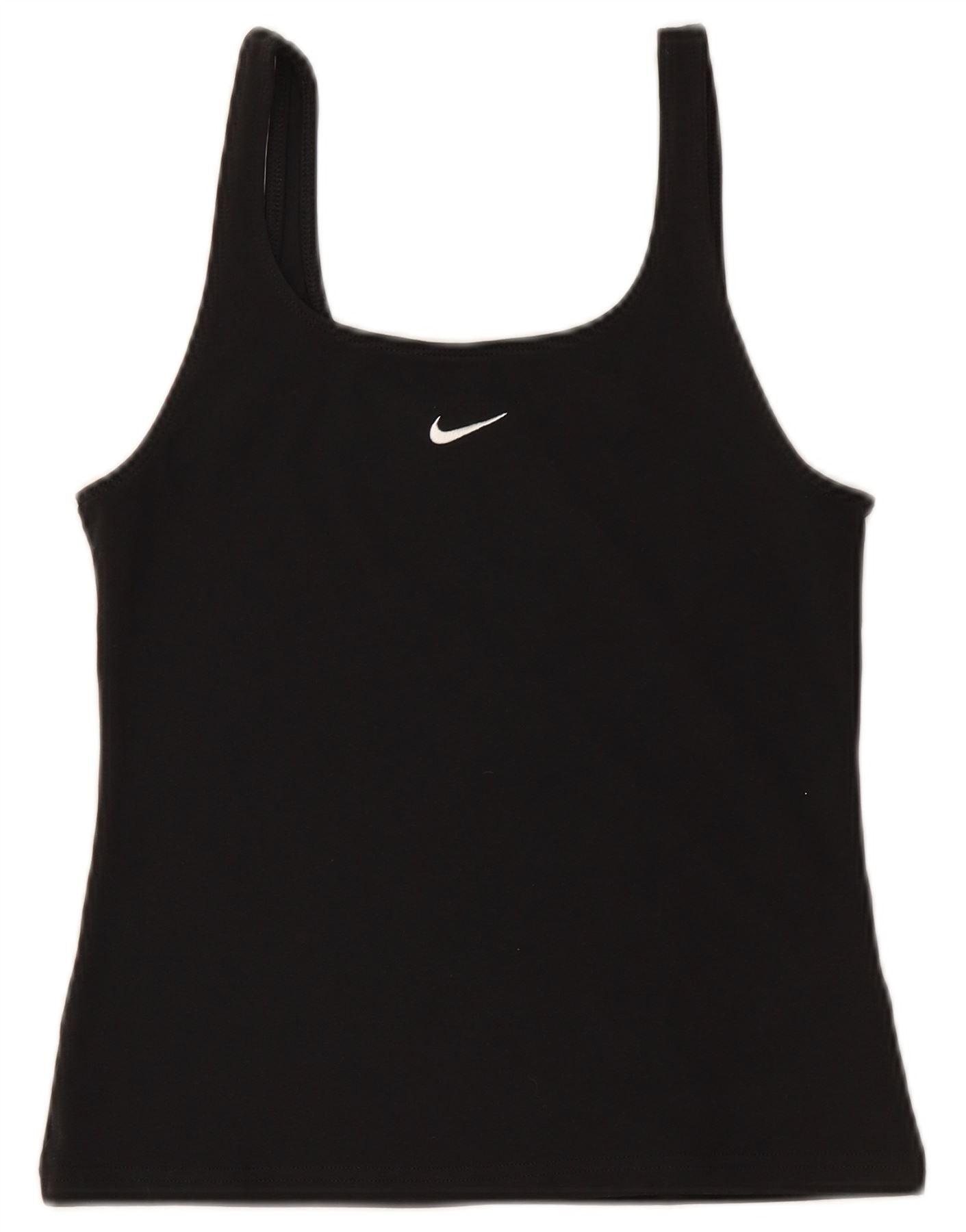 NIKE Womens Crop Cami Top UK 12 Medium Black Cotton