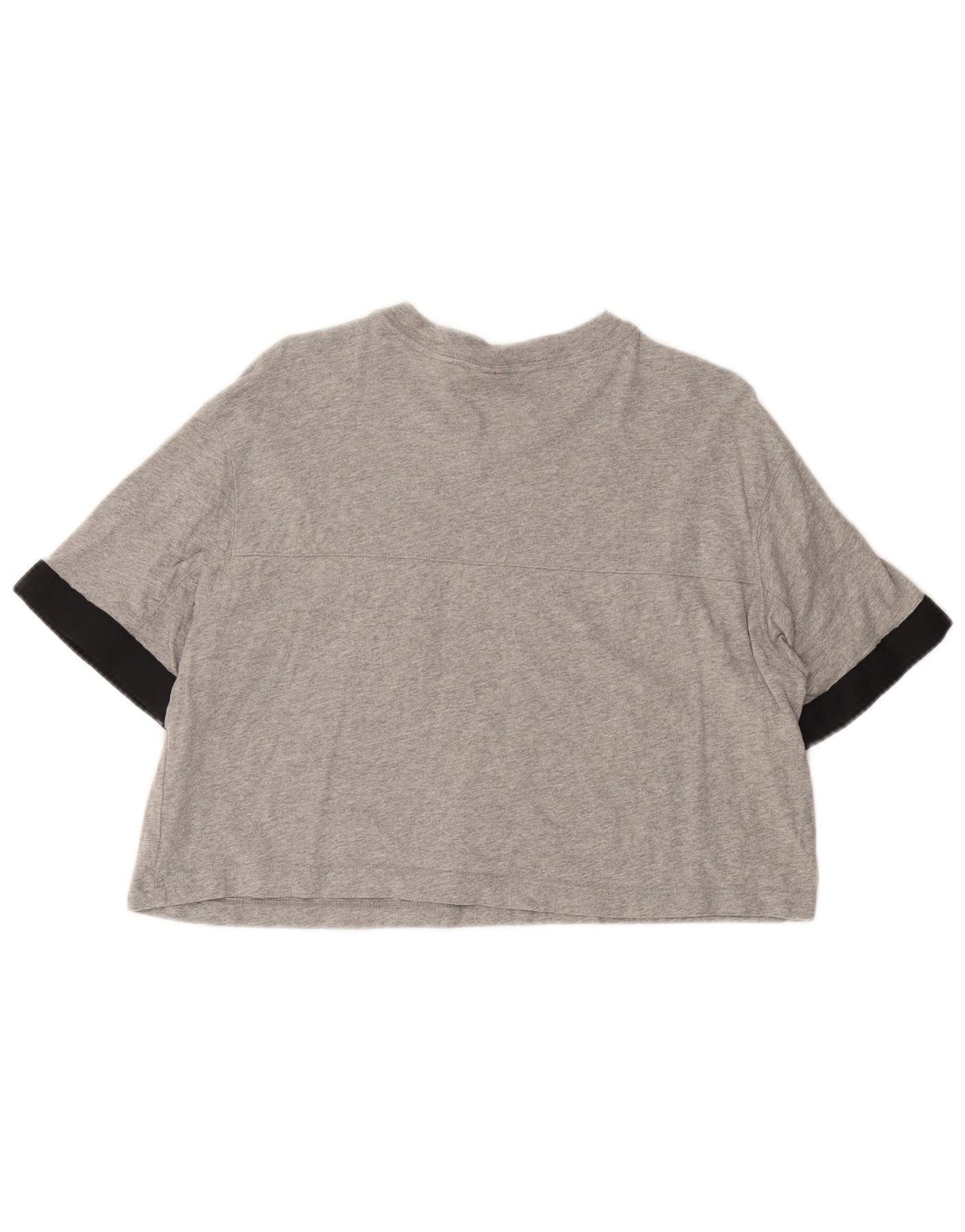 NIKE Womens Crop Graphic T-Shirt Top UK 14 Medium Grey Colourblock Cotton