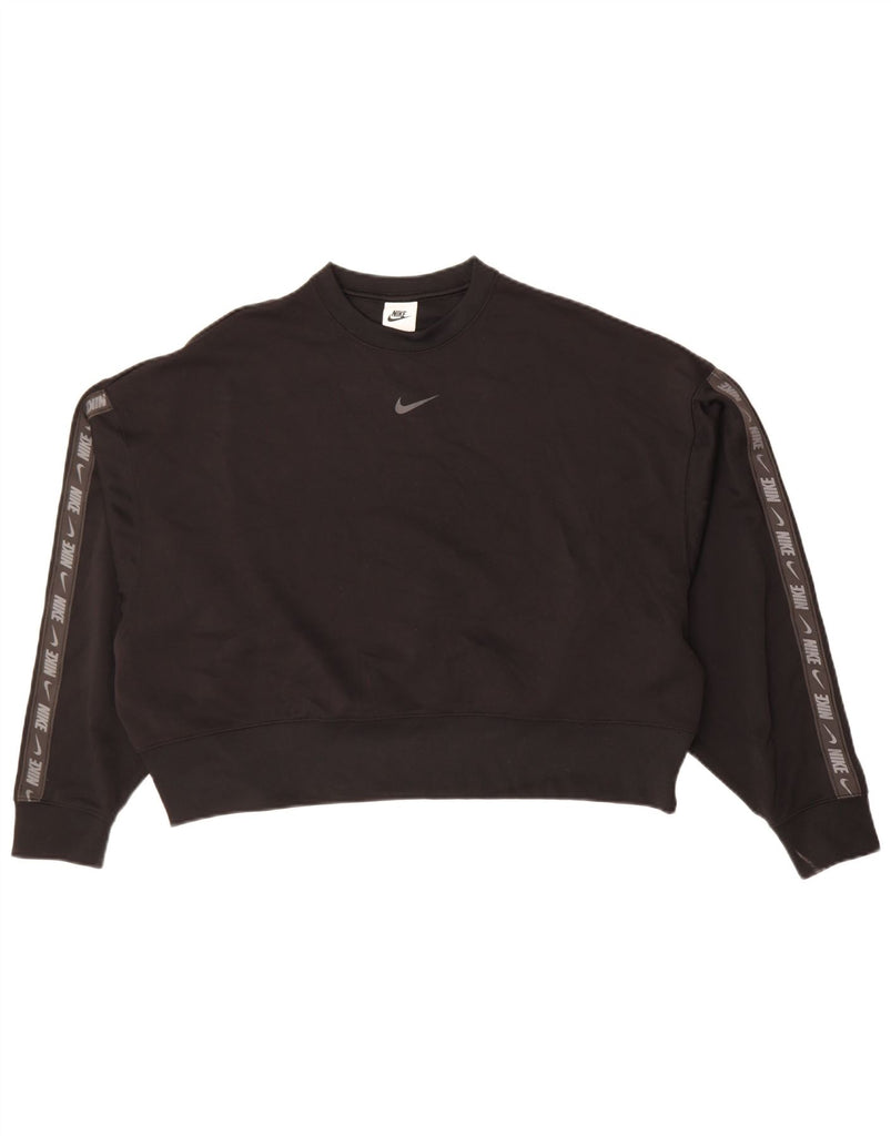NIKE Womens Crop Oversized Graphic Sweatshirt Jumper UK 10 Small Black