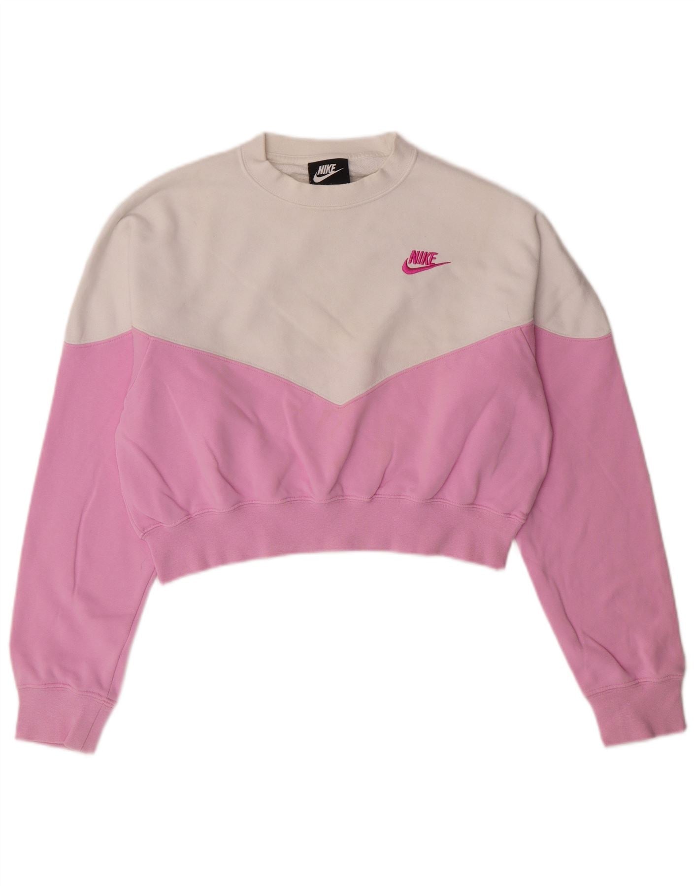 NIKE Womens Crop Sweatshirt Jumper UK 10 Small Pink Colourblock Cotton