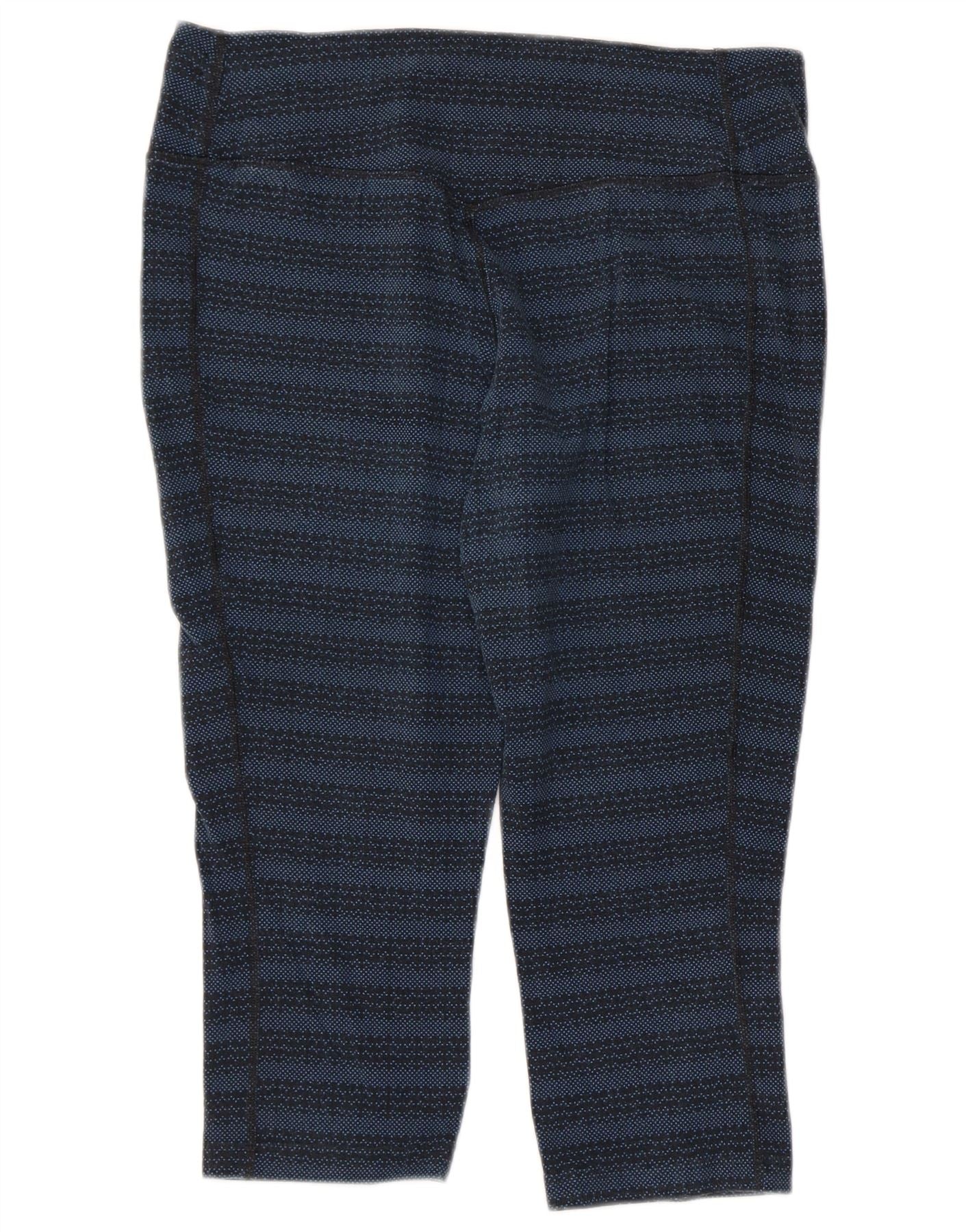 NIKE Womens Dri Fit Capri Leggings UK 14 Large Navy Blue Striped Cotton