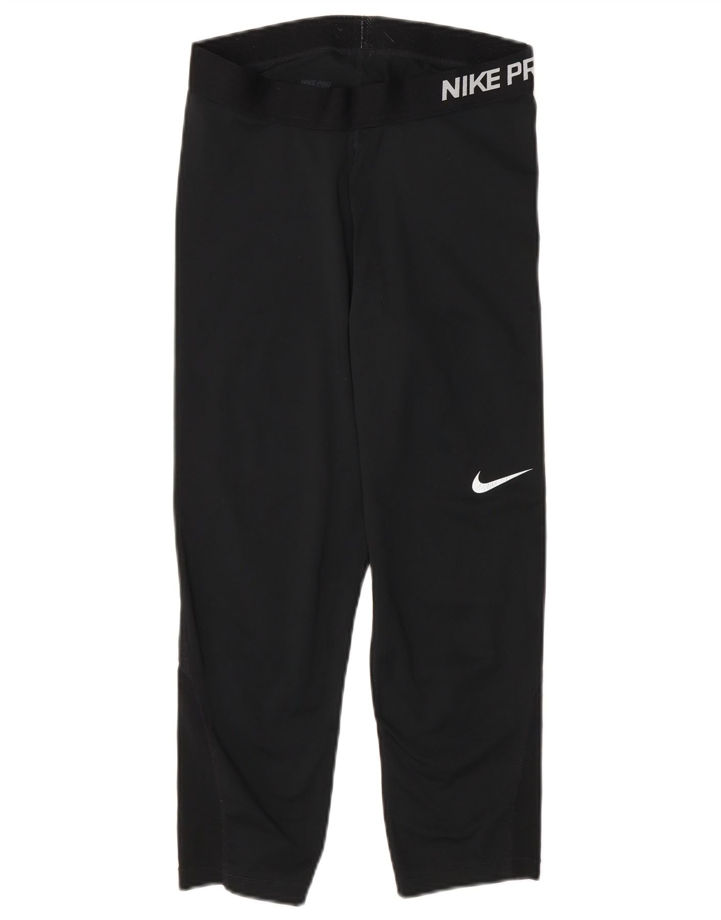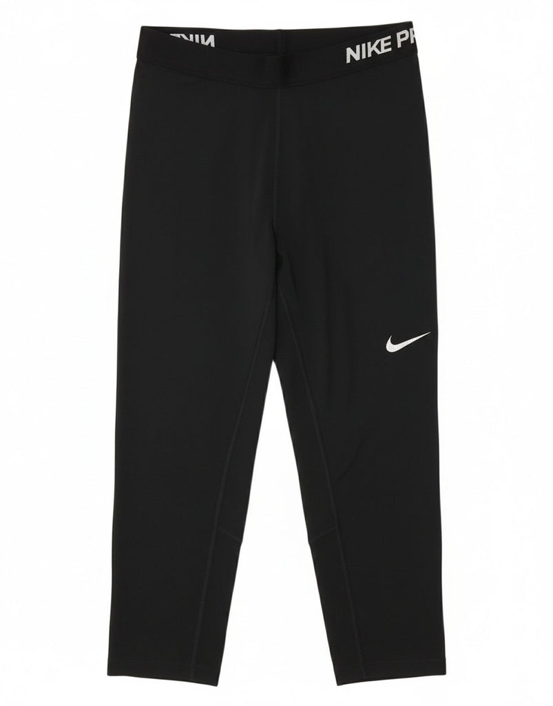 NIKE Womens Dri Fit Graphic Capri Leggings UK 12 Medium Black Polyester